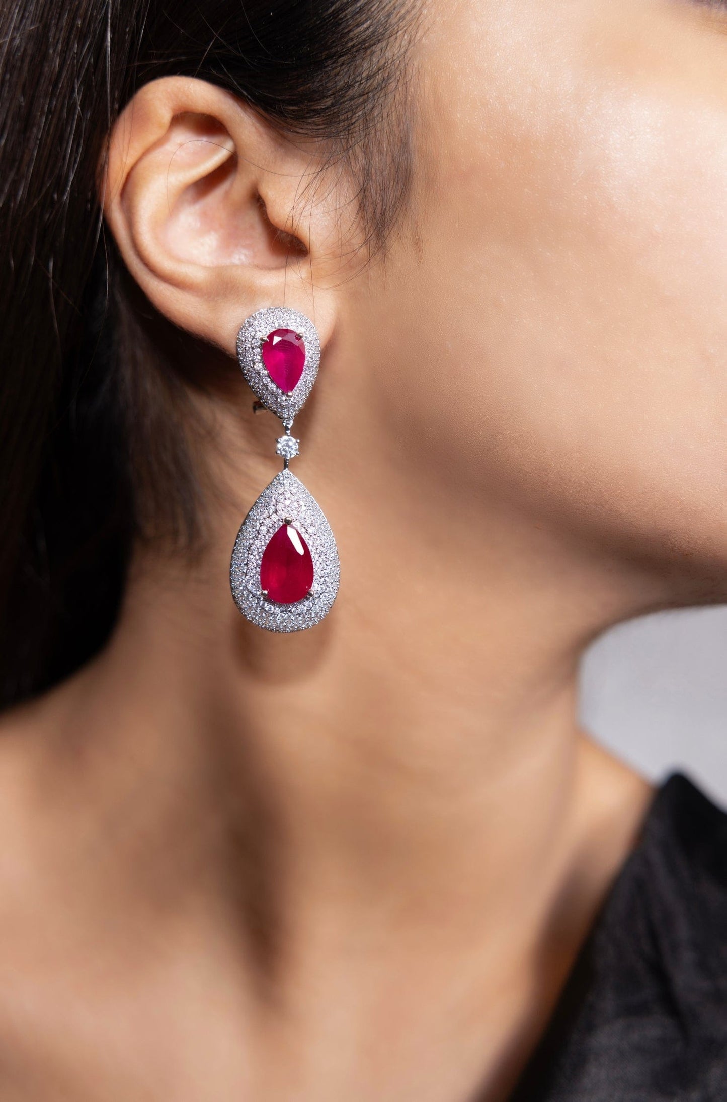 Add Vibrant Red & White Stone Cuffs Earrings to the cart