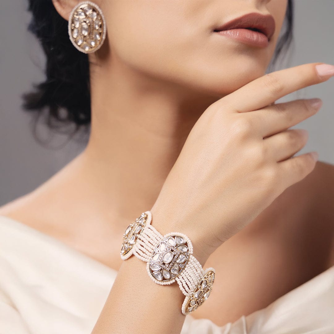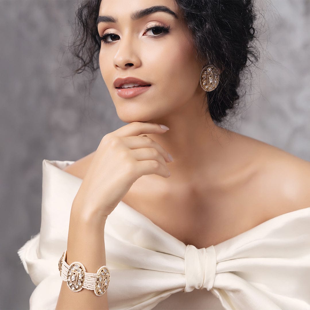 Description : A classic bracelet featuring polki pearls and a radiant yellow gold finish.