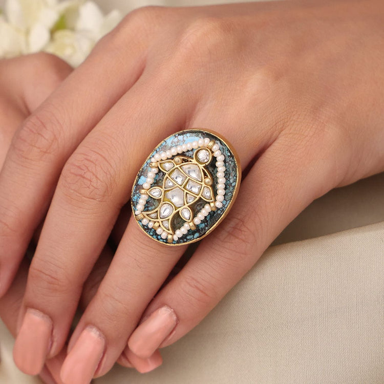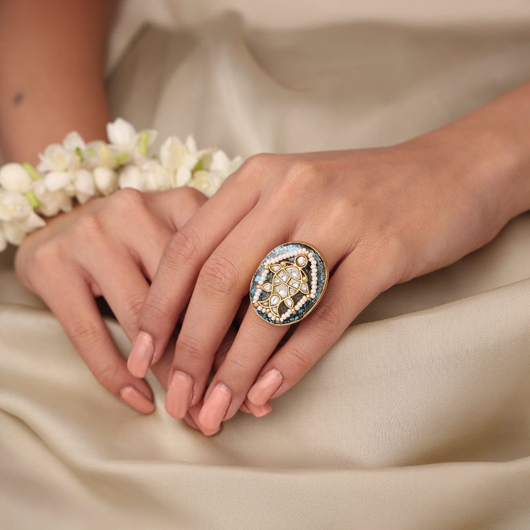 Description : ShopJBR designed with colorful enamel floral work, the Royal Bloom Enamel Ring exudes charm and artistry. A perfect accessory to add elegance to your festive look or special celebrations.