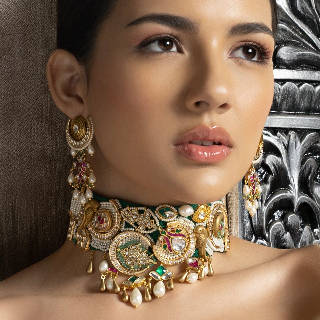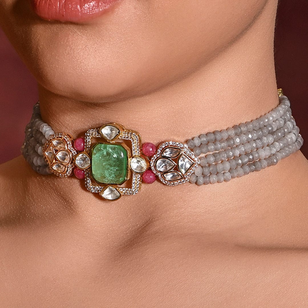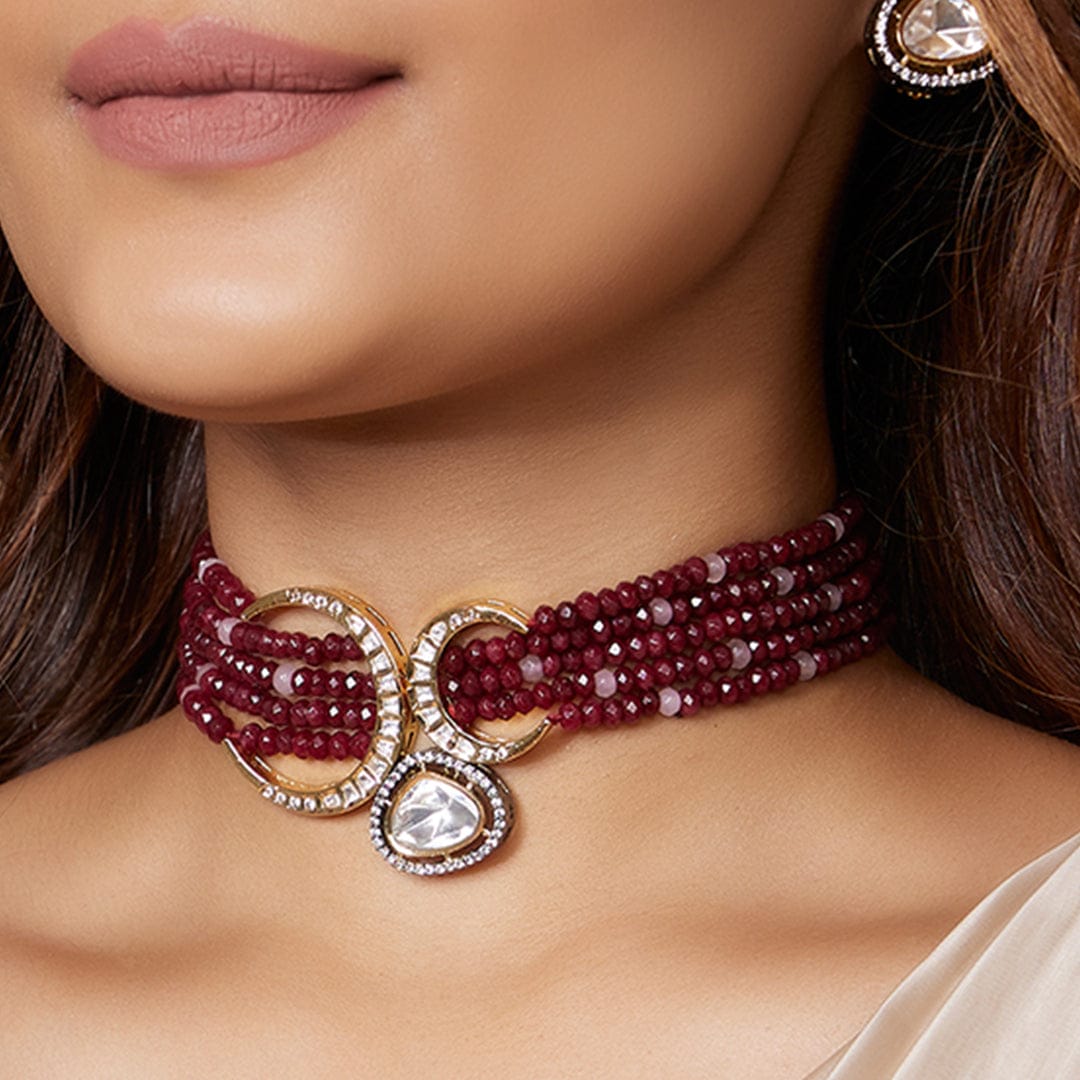 Add Royal Red Polki Choker Set to the cart