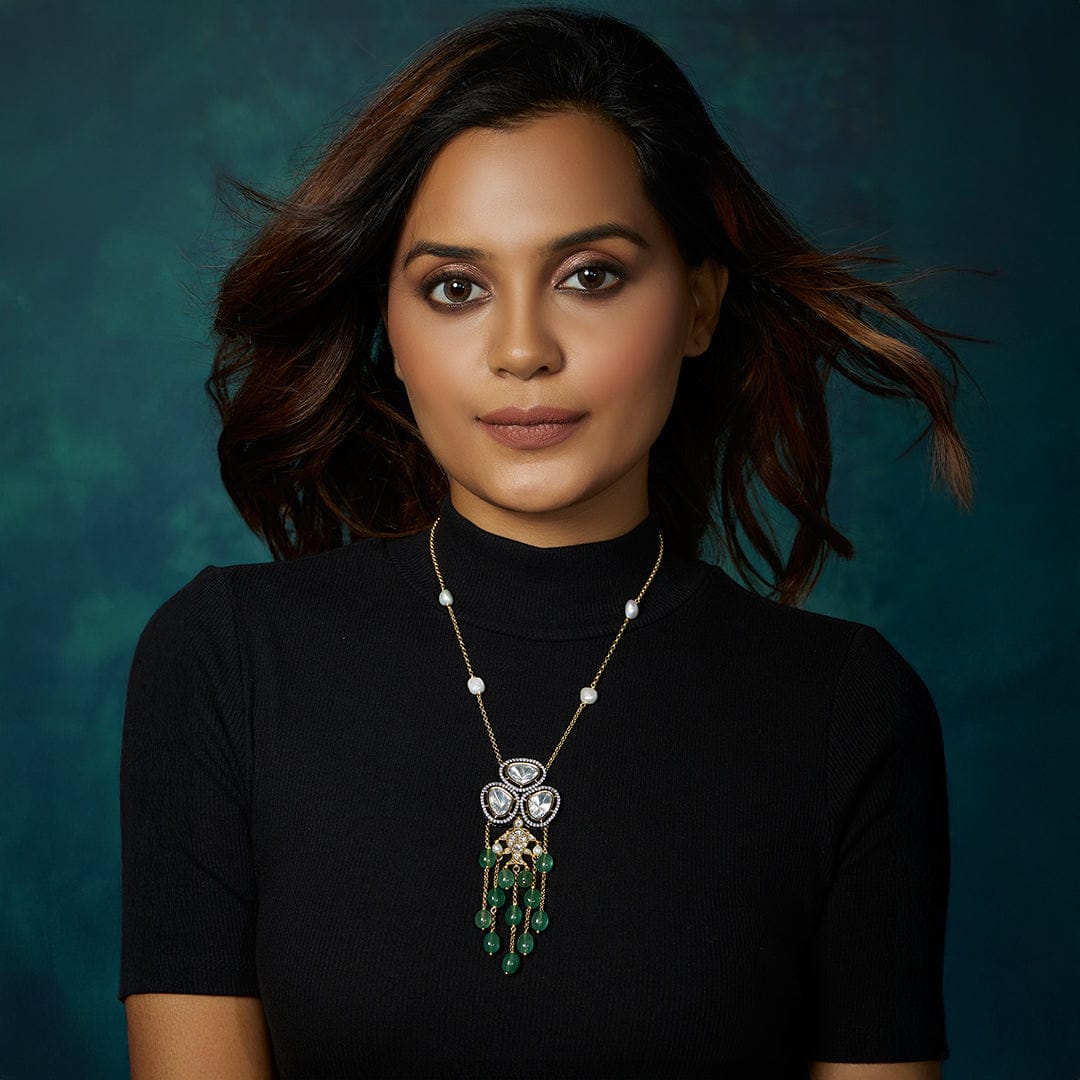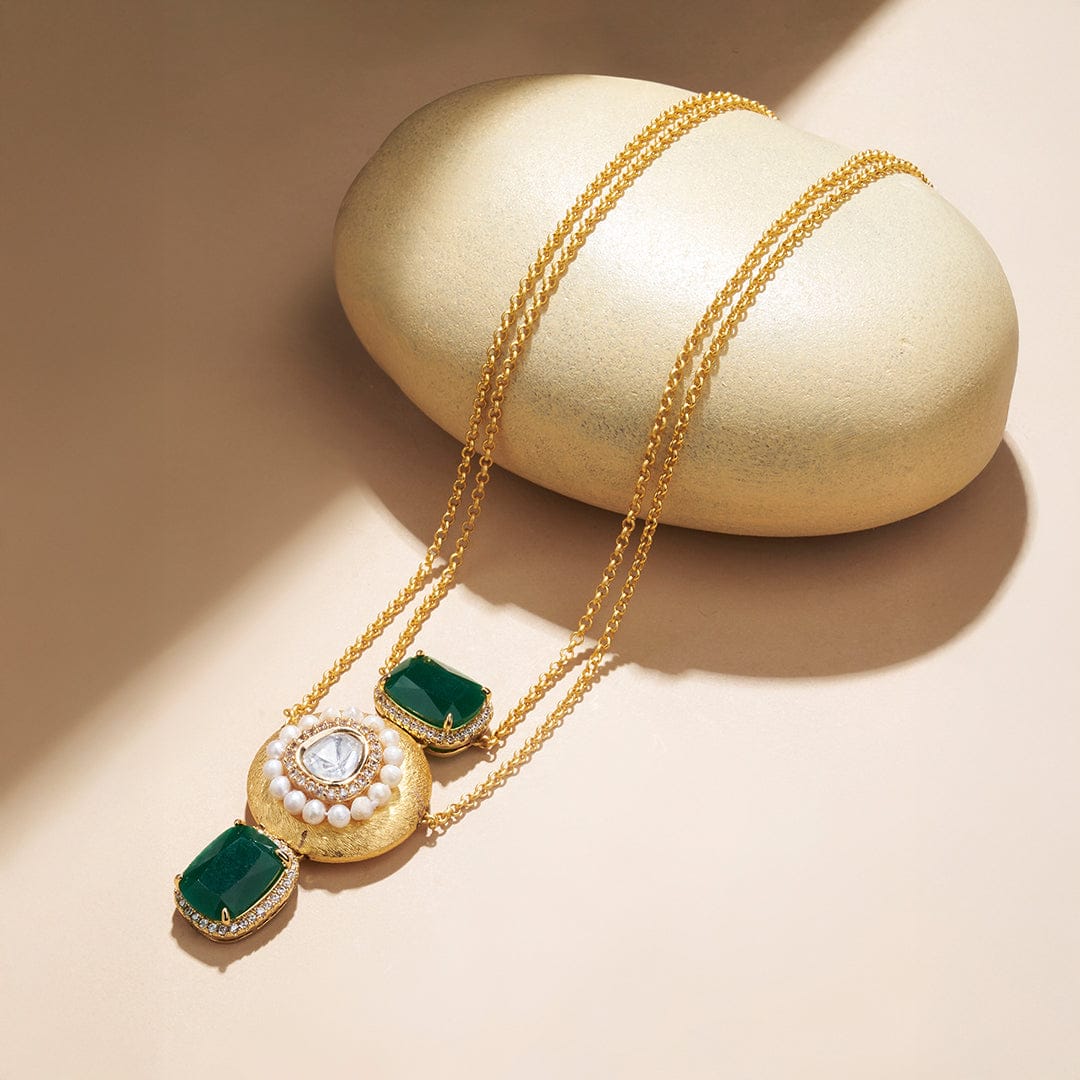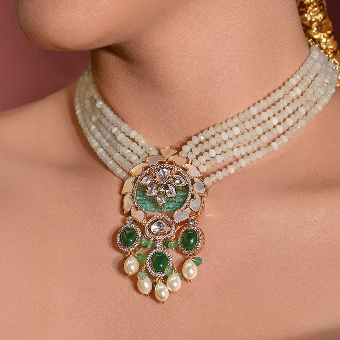 White & Green Long Necklace - Joules by Radhika