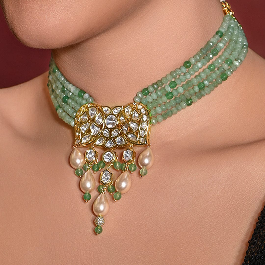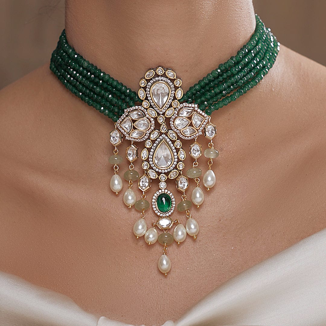 Add Polki And Green Beads Jhumka Earrings to the cart
