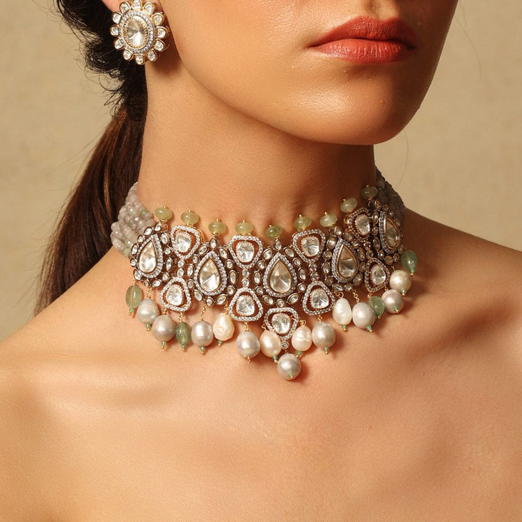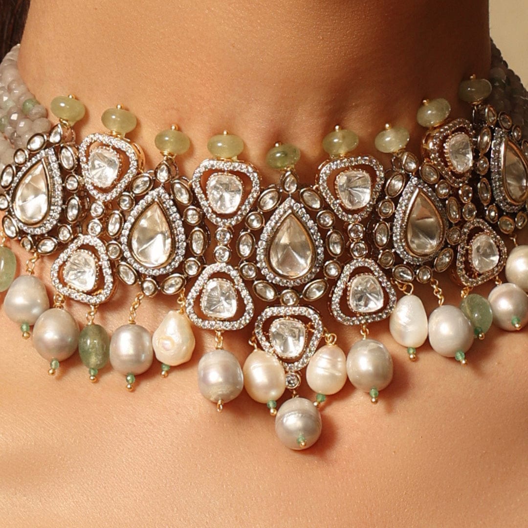 We use 22K Micron Gold Plating on brass, paired with high quality pearls, precious carved beads, semi precious stones, intricately hand painted with enamel, exquisite high quality pearls and high quality kundan that are celebrated for their durability and refinement - making every Joules by Radhika creation a piece that radiates brilliance and sophistication.