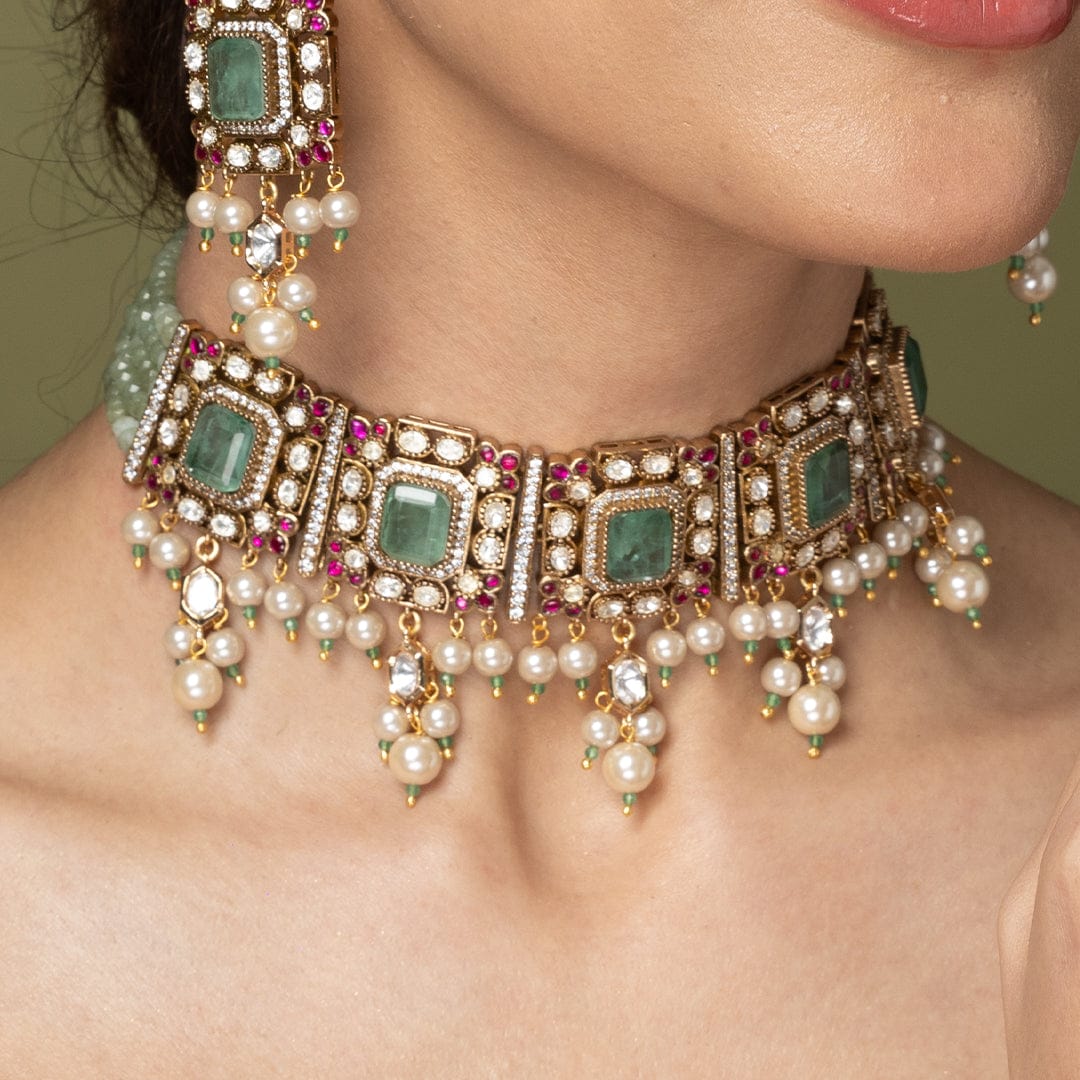 Regular price Rs. 24,000.00Description: Wear the weight of a hundred whispered ceremonies. This intricate piece carries a dazzling, luminous story, punctuated by the cool, rhythmic sway of tiny promises. It is the very essence of heritage elegance.
