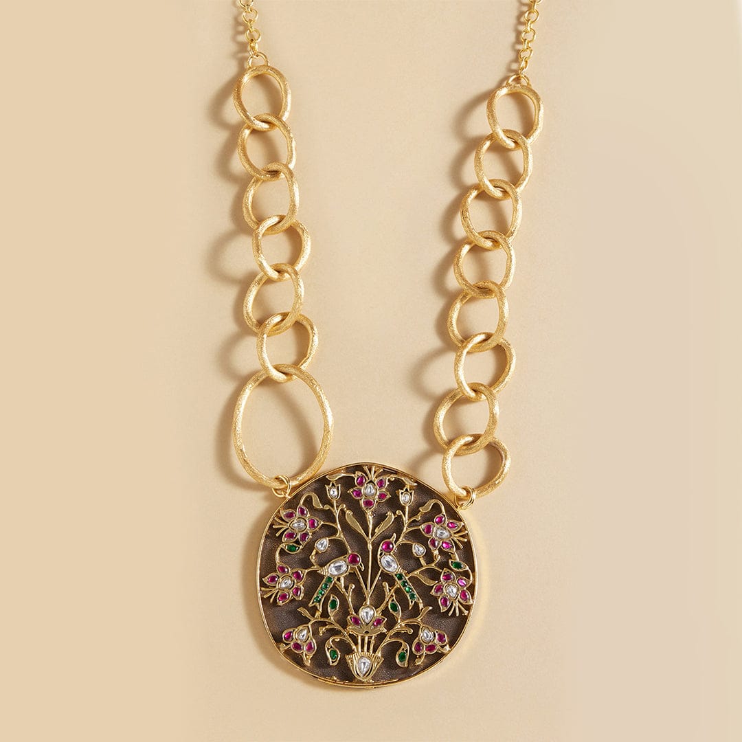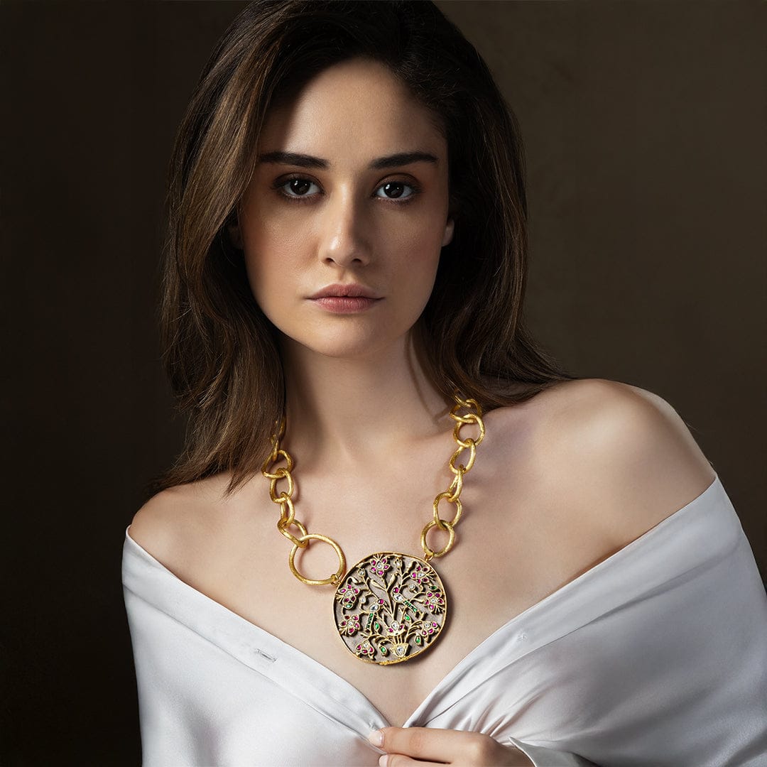 Description: Introducing the Gold Tone Bespoke Pendant Necklace, a versatile choice for parties, night outs, brunches, personal milestones, festivities, and weddings. The Gold Tone Cuban chain with a designer pendant, various motifs, and stones is the perfect ingredient for making a statement and celebrating life's unforgettable moments.