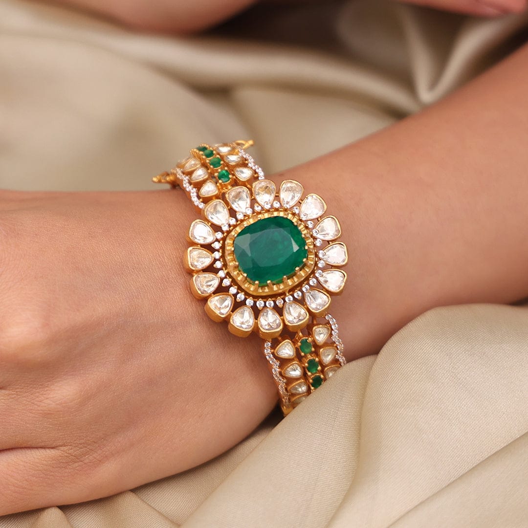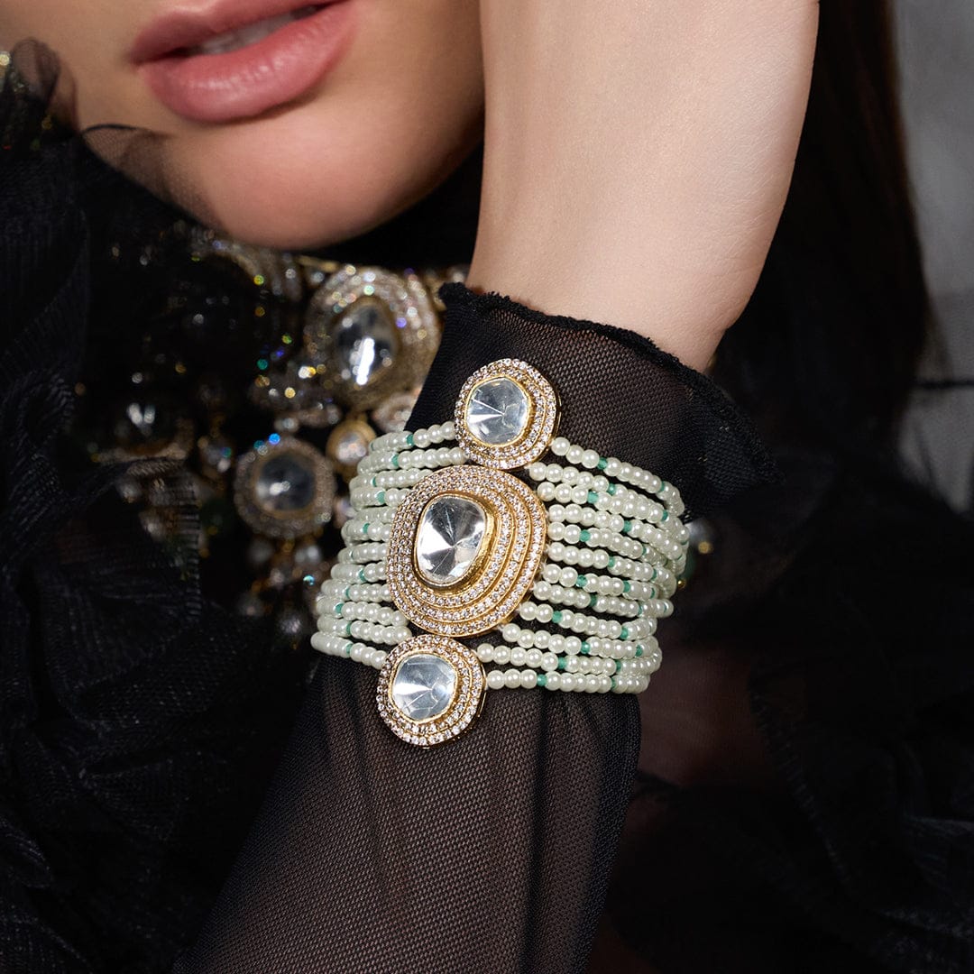 Add Elegant Gold Plated Mint Green-Stone Bangle to the cart