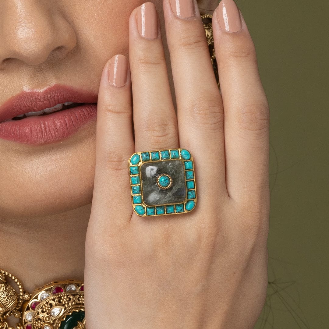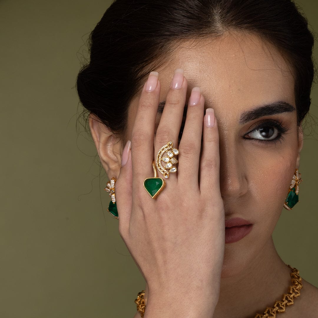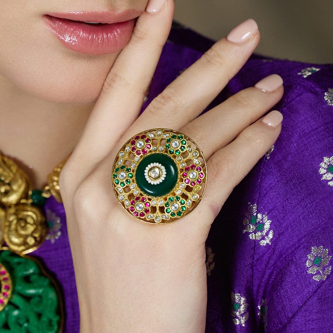 Add Abstract Kundan and Green Enamel Ring to the cart