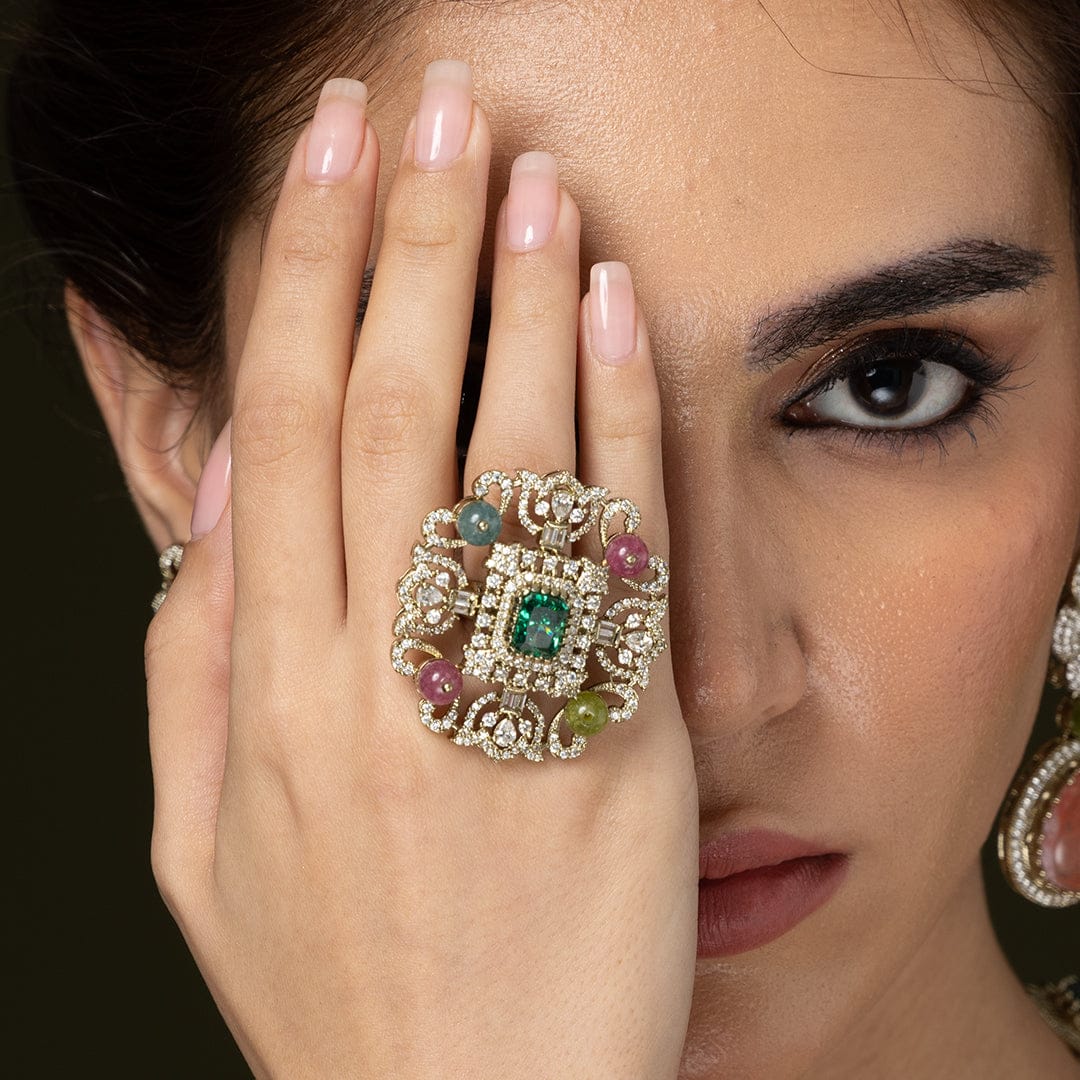 Add Emerald Center & Colorful Bead Statement Ring to the cart