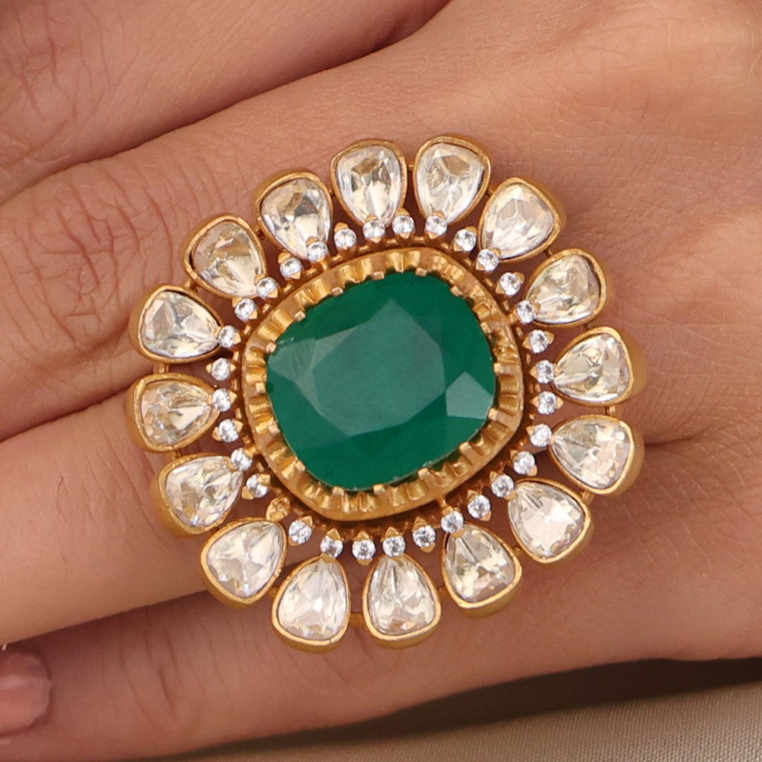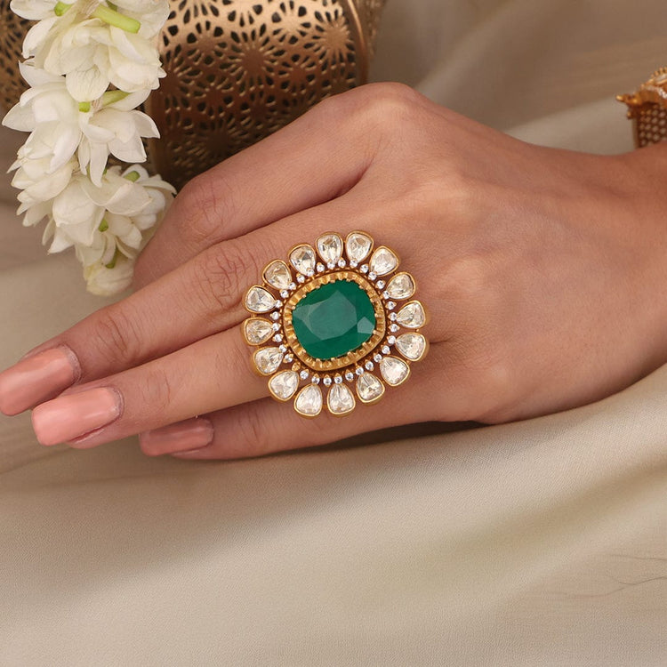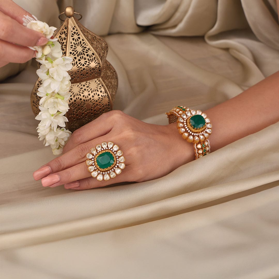 Description : Add a hint of charm to your style with Emerald Bloom Kundan. Designed with care using gold-plated premium alloy that refines your look. Wear it with sarees, and ethnic wear to elevate your look..