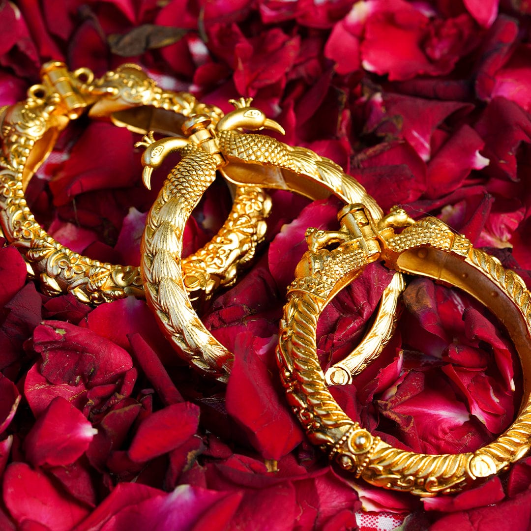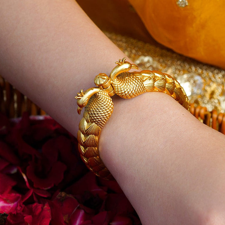 Description : The Noor-E-Kundan Bangle is designed with a touch of tradition and elegance, featuring exceptional Kundan artistry on a shining gold base.
