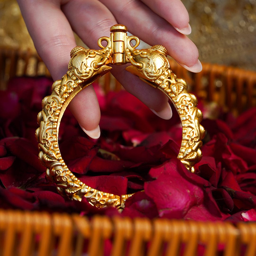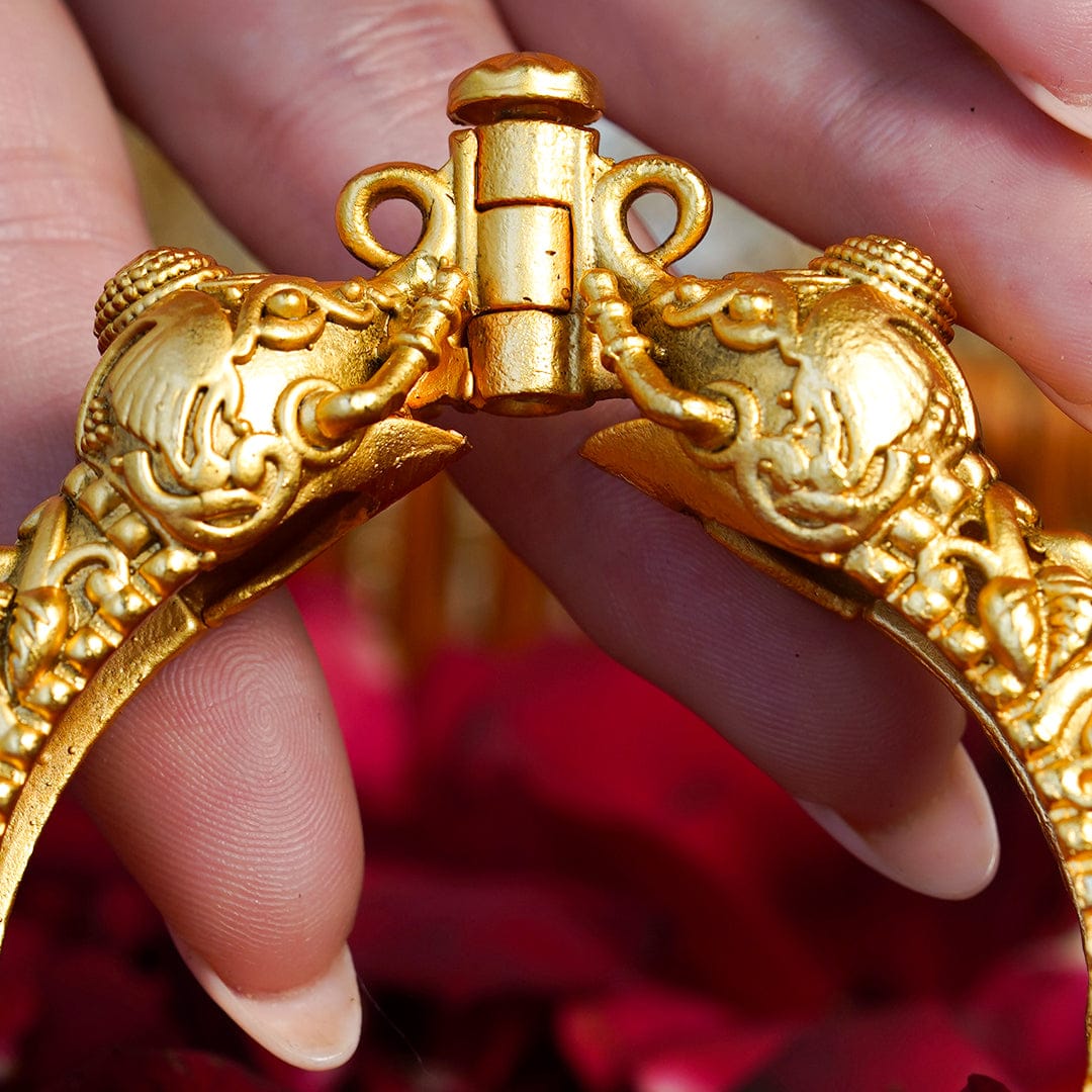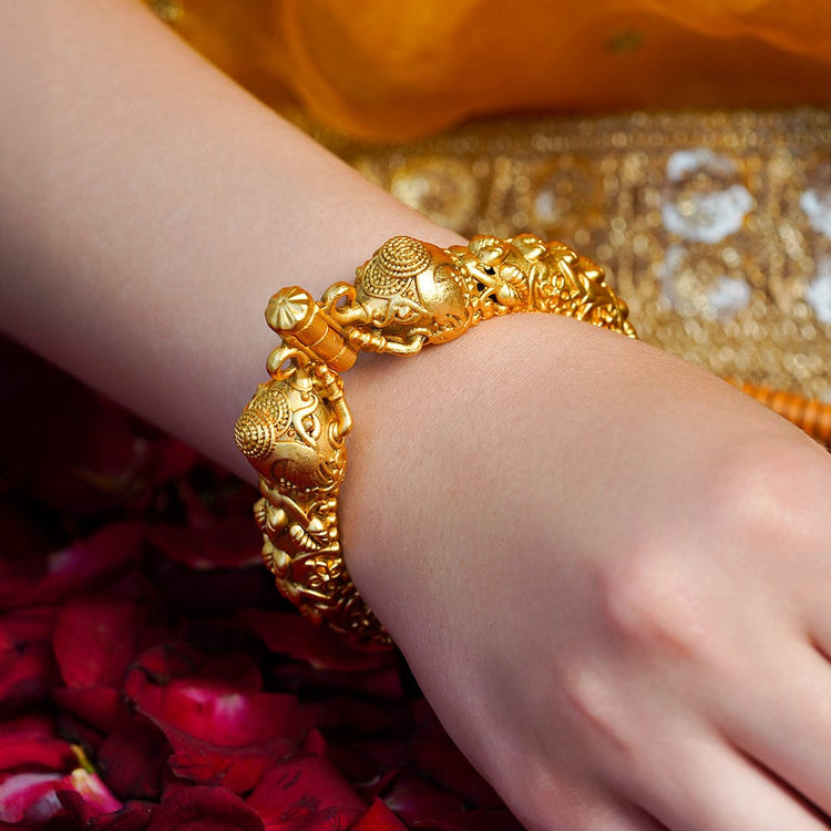 Description : The Golden Shringaar Bangle is a design to tribute to traditional craftsmanship, featuring delicate detailing and a rich gold finish.
