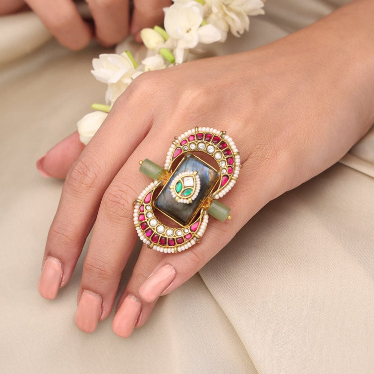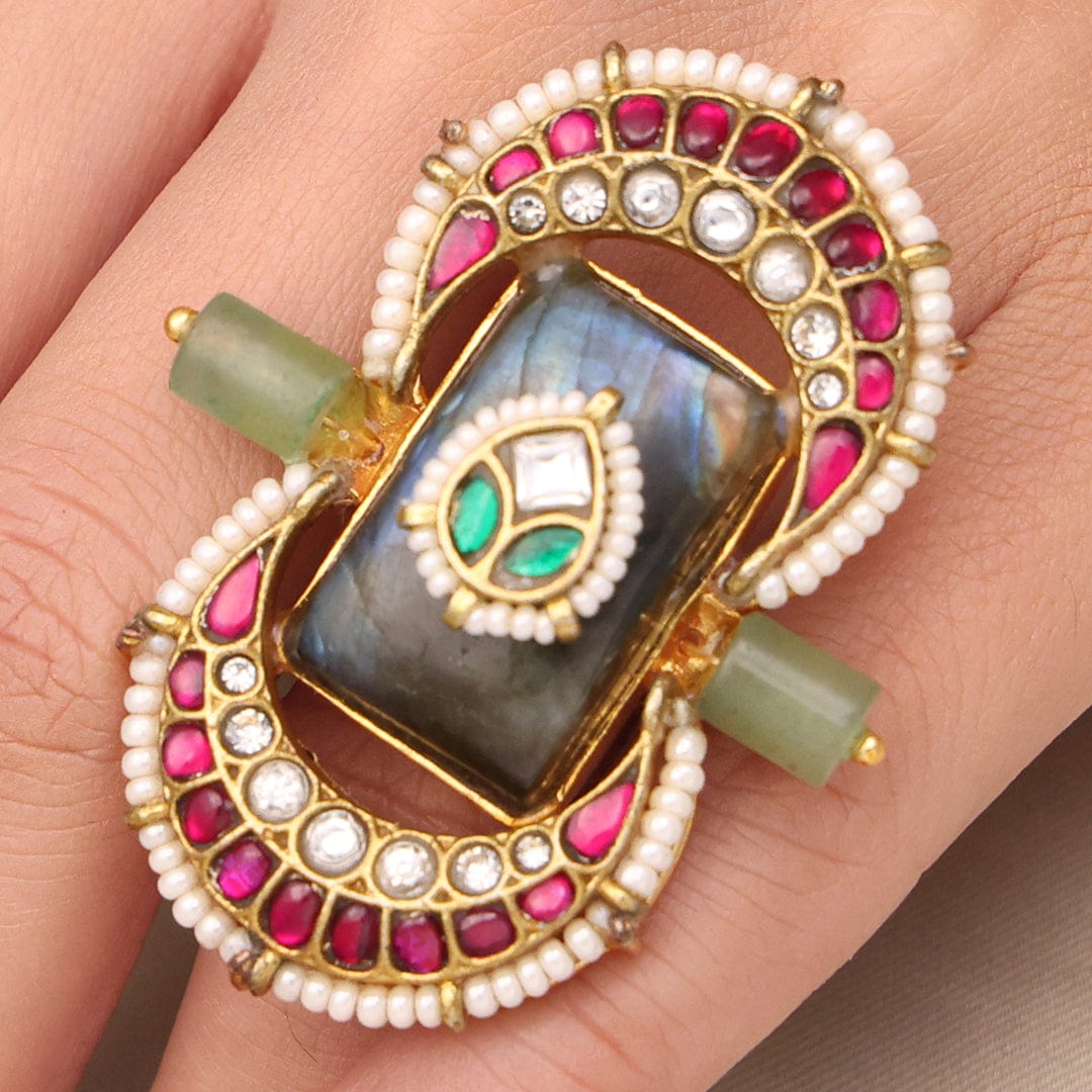 Description : Our Meenakari Green Royale Ring highlights traditional enamel artistry with green gemstones. Its timeless design makes it perfect for festive events, weddings, or cultural occasions, radiating regal heritage charm.