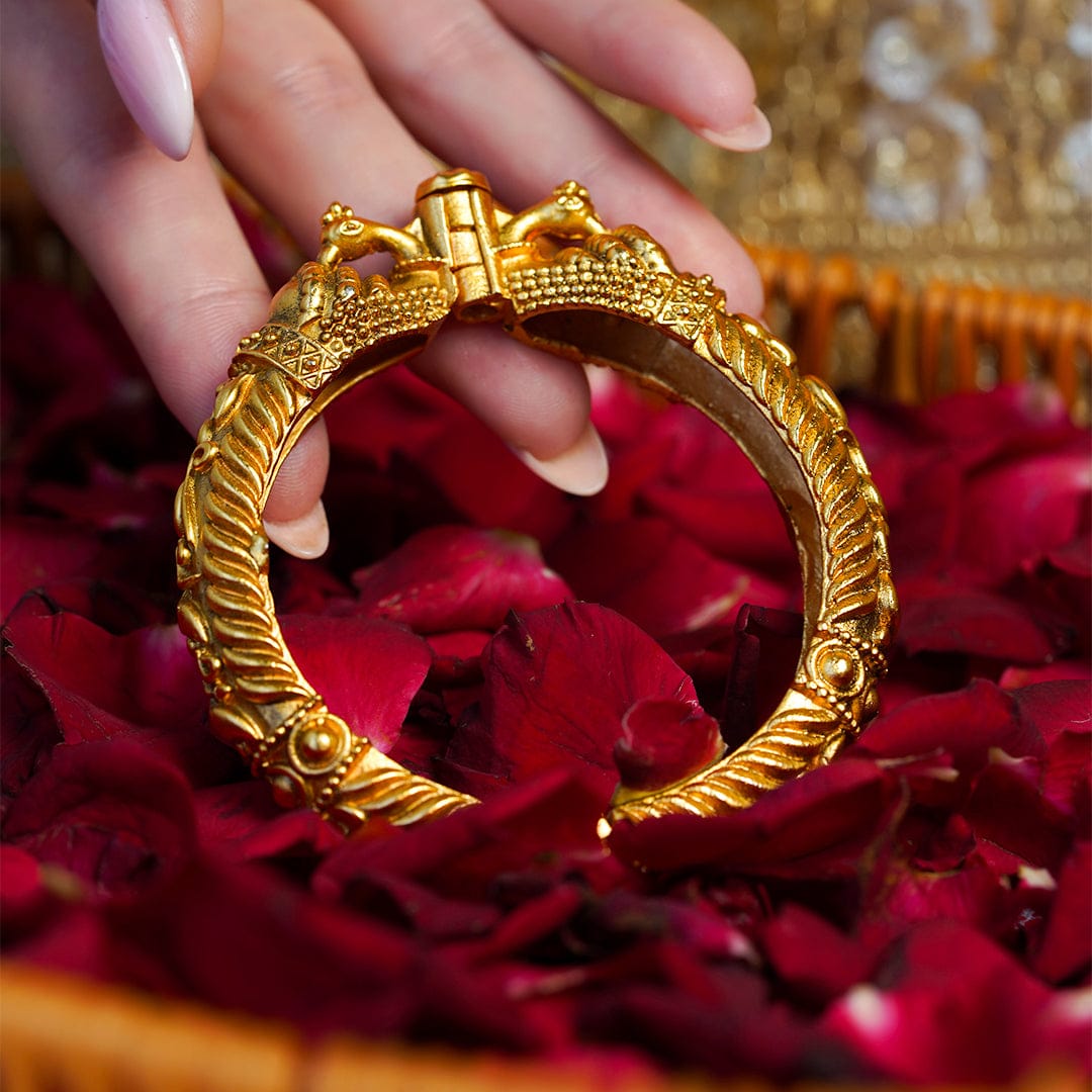 Description : Rajlaxmi Kundan Bangle is elevating your personality; it is an evergreen design to add regal charm and sparkle to every occasion.