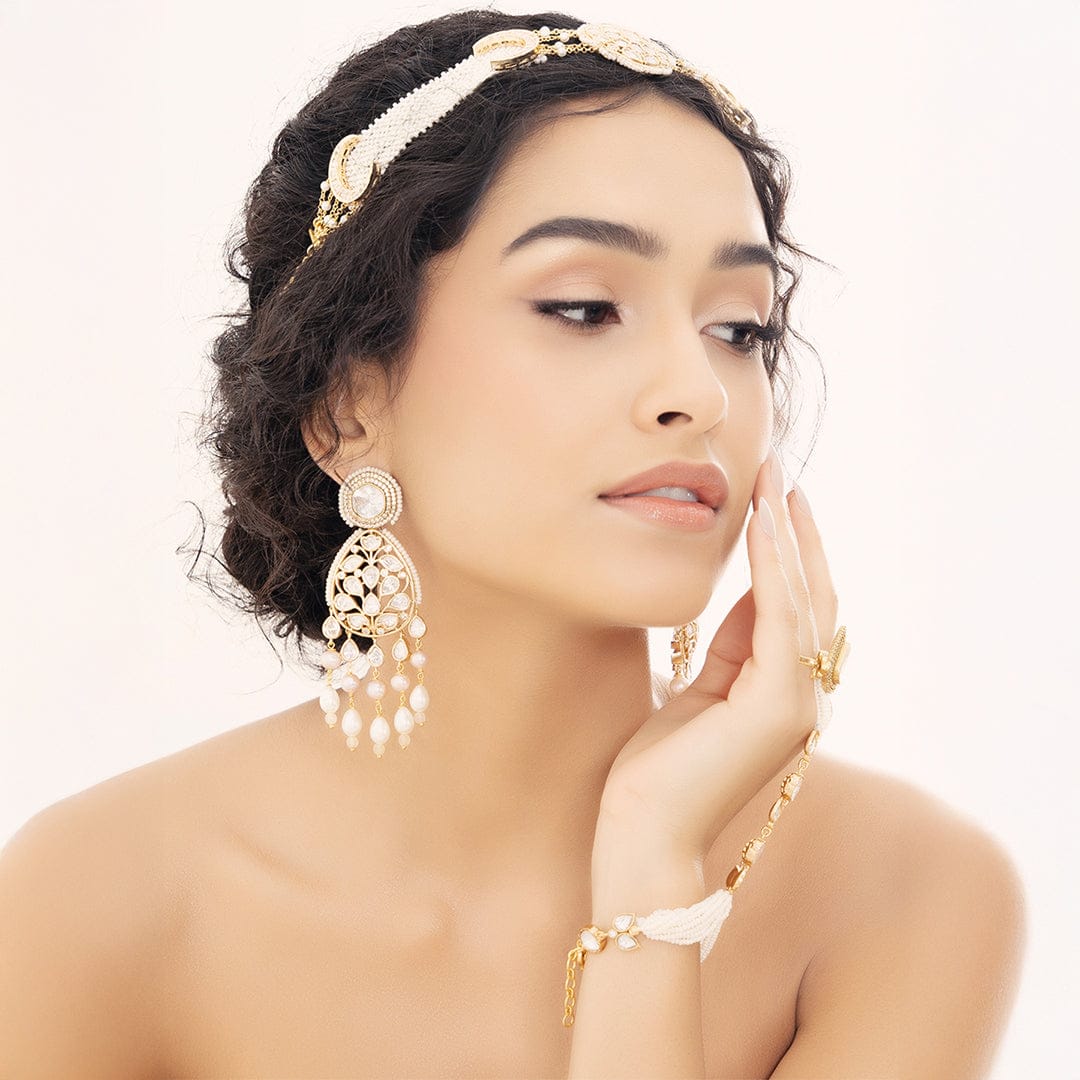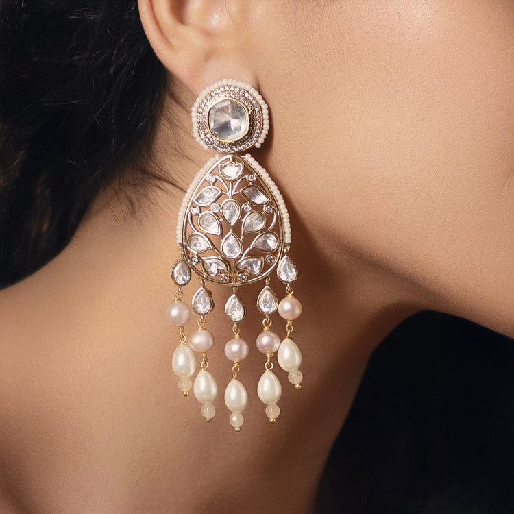 Regular price Rs. 6,863.00Description : Radiant gold earrings adorned with polki pearls and a yellow gold finish.