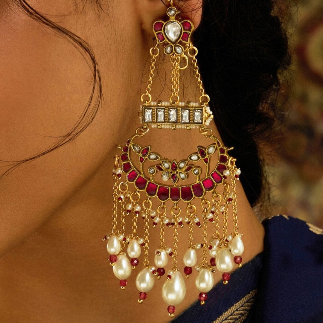 Description: Royal Ember Chandbali radiates regal charm with its captivating blend of rich red and glimmering golden hues. This exquisite piece showcases traditional craftsmanship, featuring intricate motifs that embody the essence of Rajwadi artistry. The graceful curves and elaborate detailing create a stunning silhouette, while the vibrant colors add a touch of sophistication to any festive ensemble. Elevate your jewelry collection with this statement piece that effortlessly combines heritage and elegance, perfect for celebrations and special occasions.