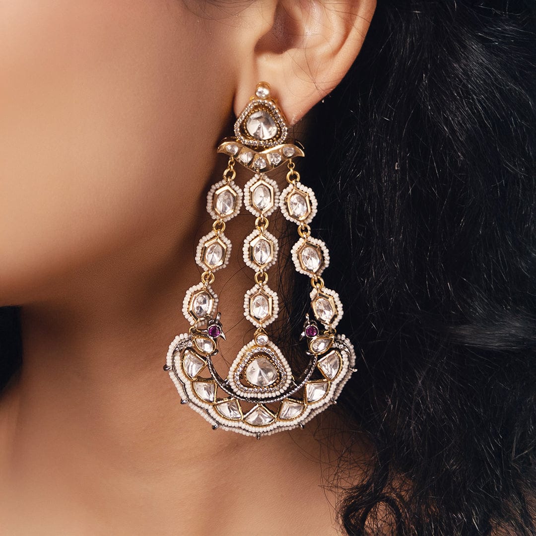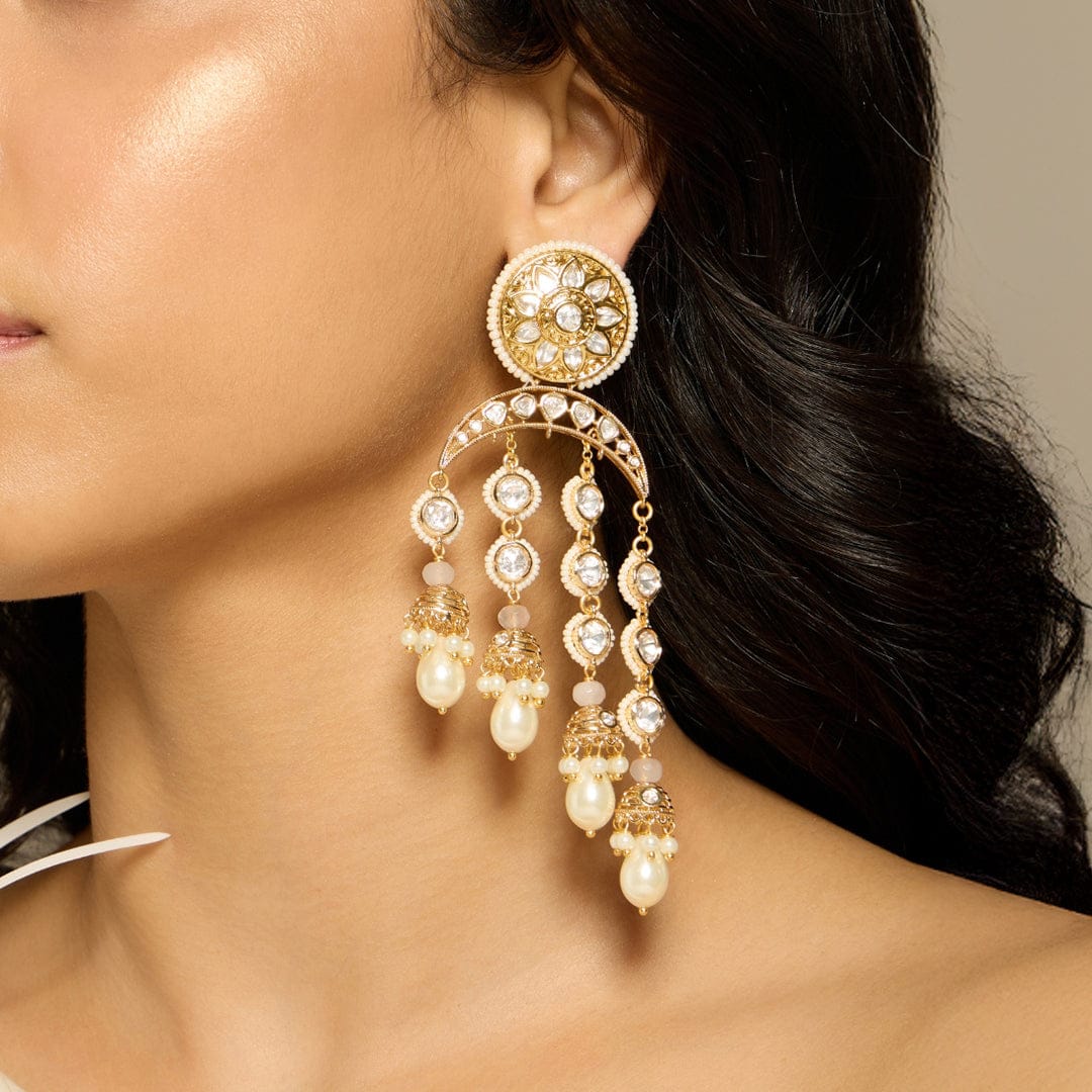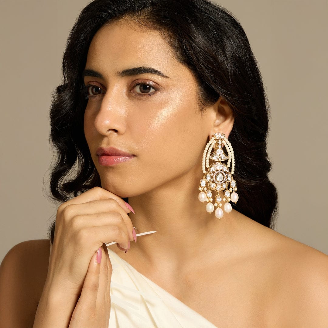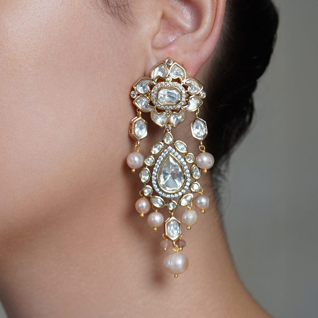 Polki And Pearl Drop Earrings - Joules by Radhika