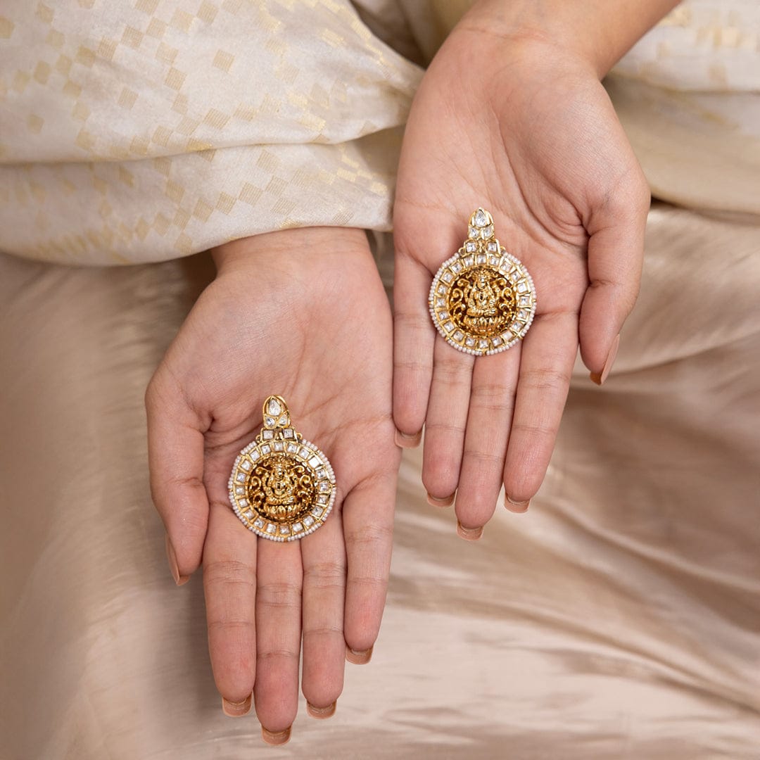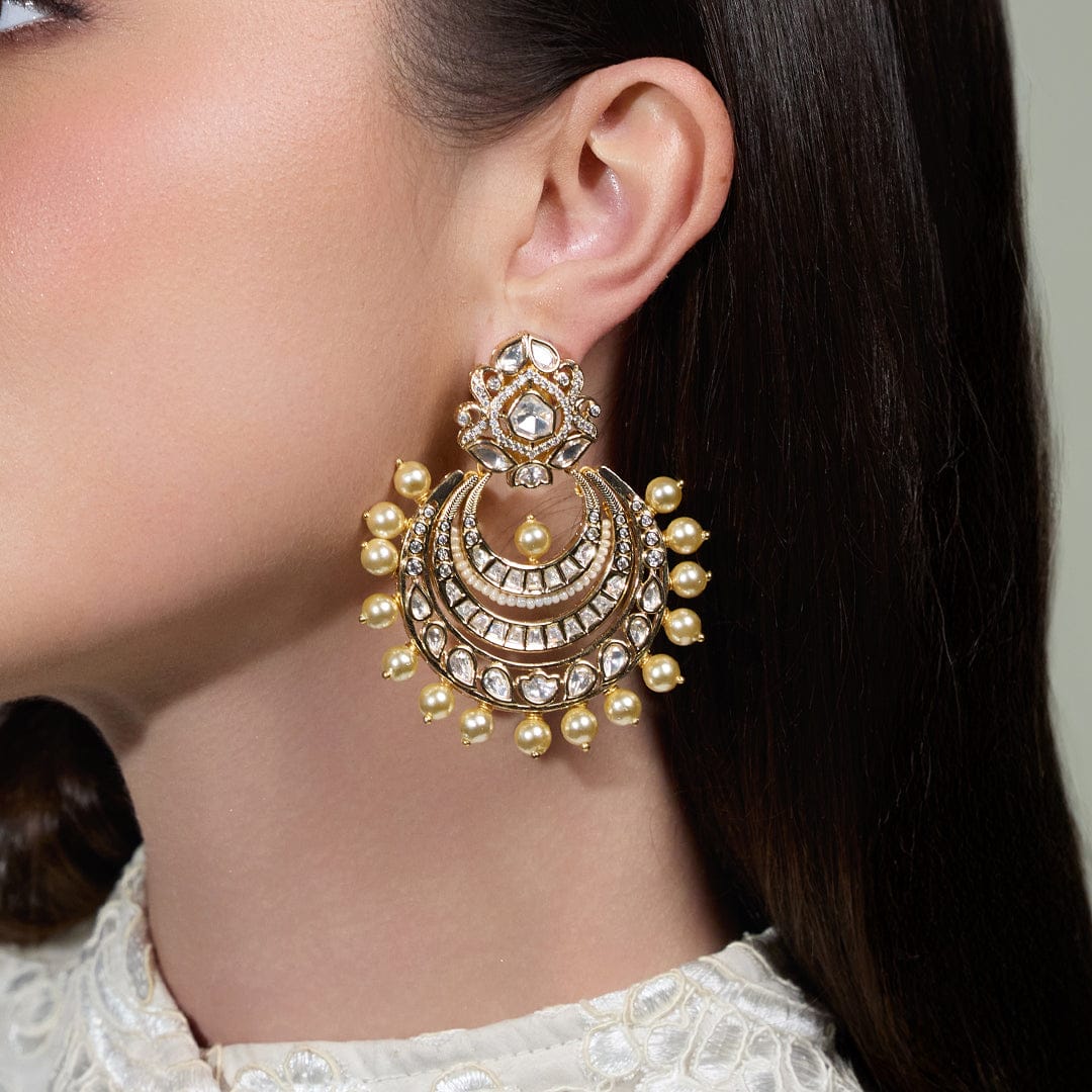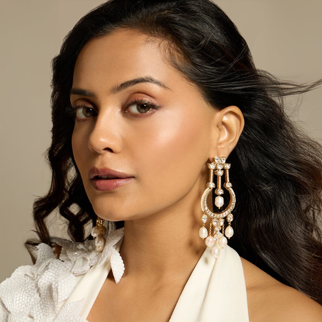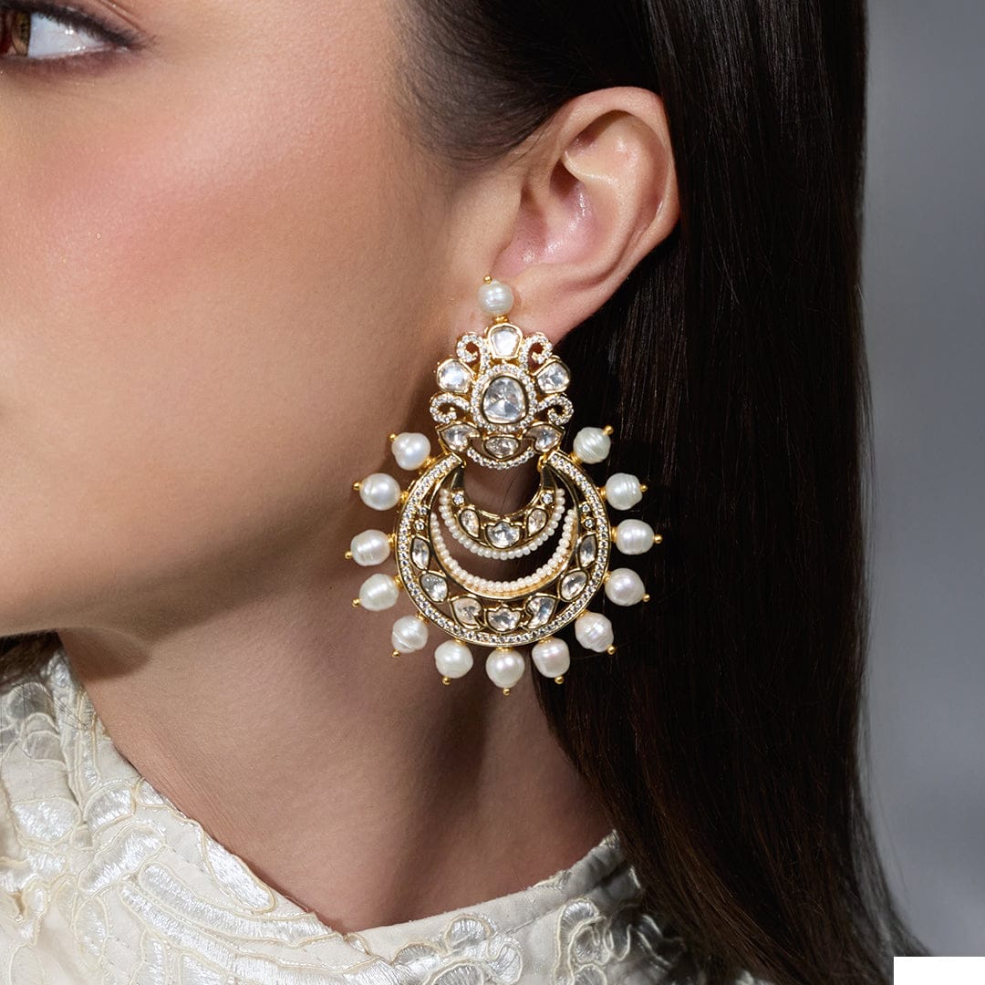 Polki And Pearl Drop Earrings - Joules by Radhika