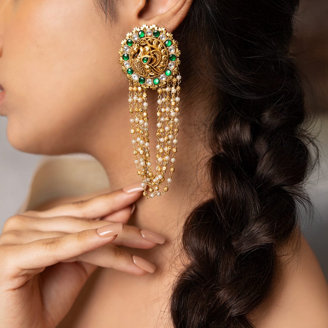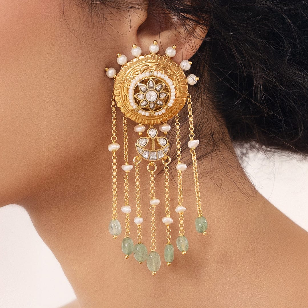 Polki-Pearl Dazzling Green Earrings - Joules by Radhika