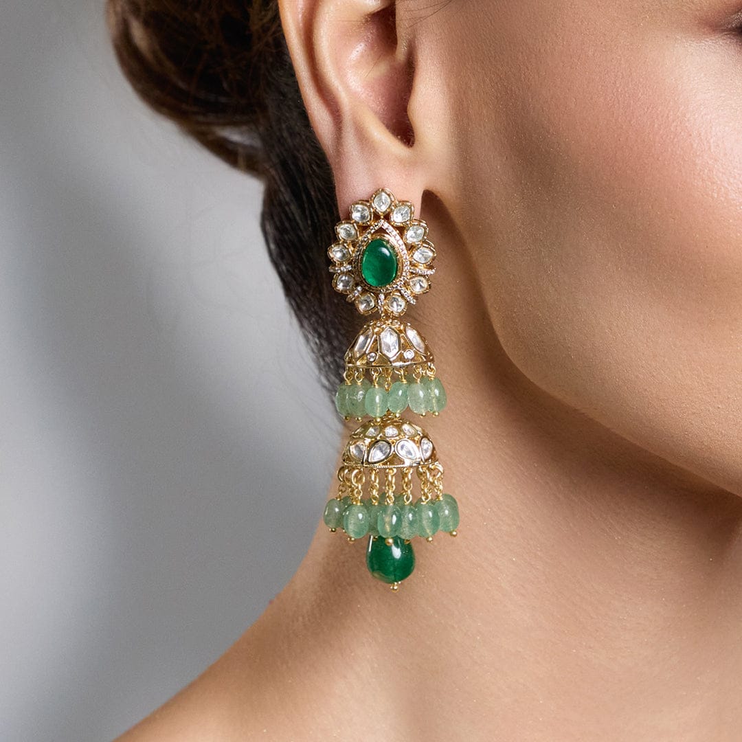 Add Exquisite Green Bead Polki Jhumka Earring to the cart