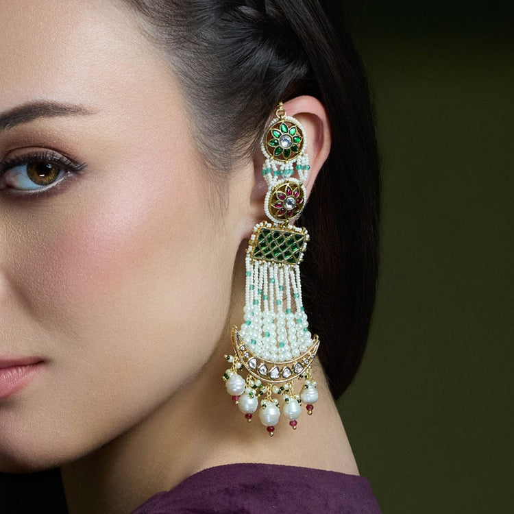Description: Enhance your bridal look with this exquisite multicolour kundan passa, featuring intricate detailing, pearl strings, and delicate bead tassels. A timeless accessory perfect for weddings, sangeet, and traditional festivities.