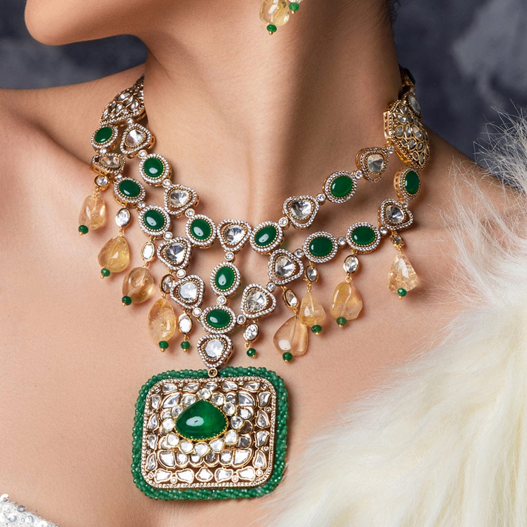 Add Rajwadi Green Glory Chaandbali Earring to the cart