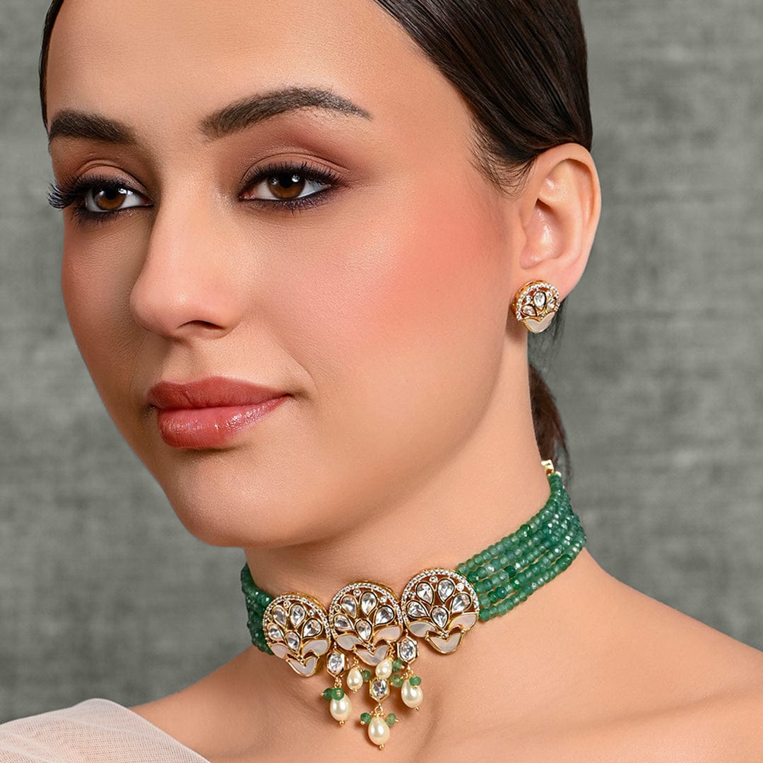 Description: Elevate your look with our exquisite choker necklace paired with matching earrings. This timeless set exudes elegance and sophistication, perfect for any special occasion or evening affair.
