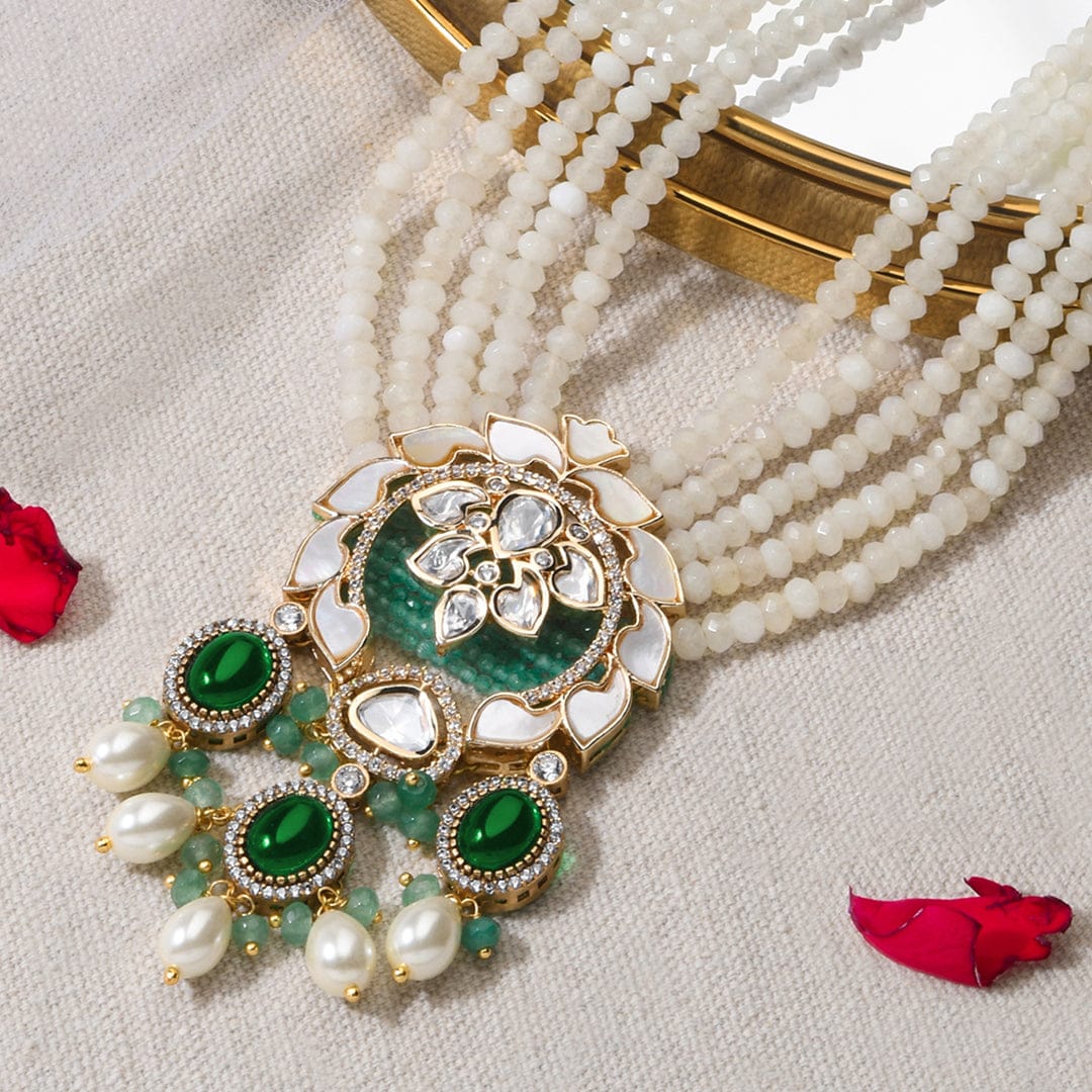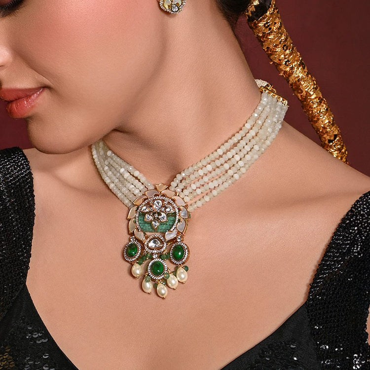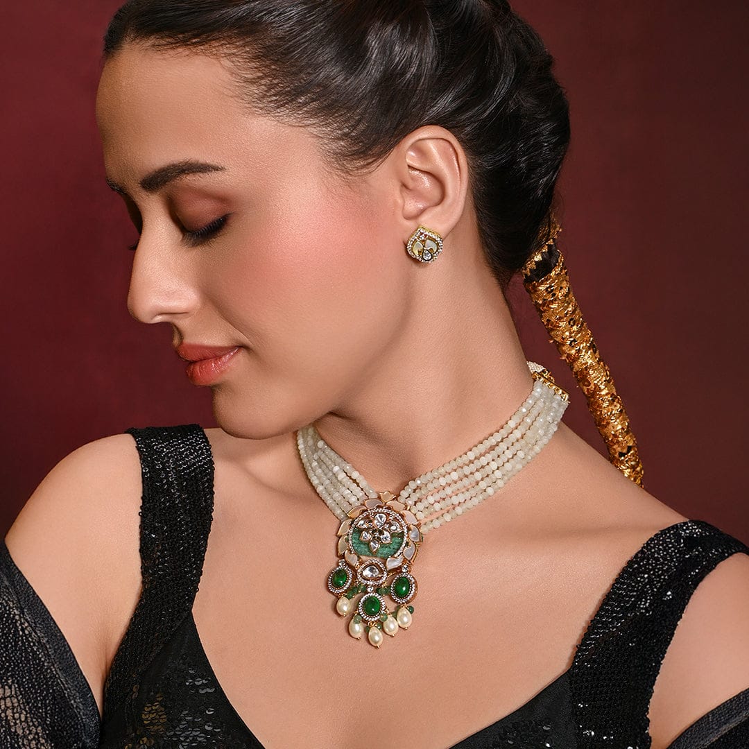 We use 22K Micron Gold Plating on brass, paired with high quality pearls, precious carved beads, semi precious stones, intricately hand painted with enamel, exquisite high quality pearls and high quality kundan that are celebrated for their durability and refinement - making every Joules by Radhika creation a piece that radiates brilliance and sophistication.