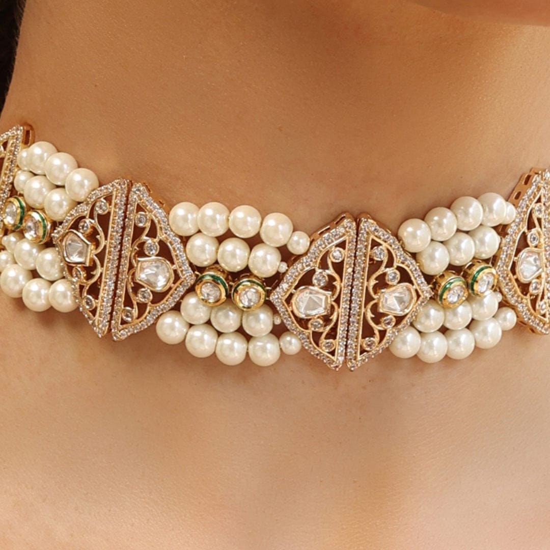 We use 22K Micron Gold Plating on brass, paired with high quality pearls, precious carved beads, semi precious stones, intricately hand painted with enamel, exquisite high quality pearls and high quality kundan that are celebrated for their durability and refinement - making every Joules by Radhika creation a piece that radiates brilliance and sophistication.