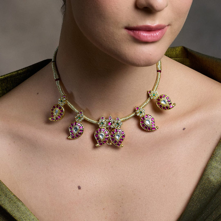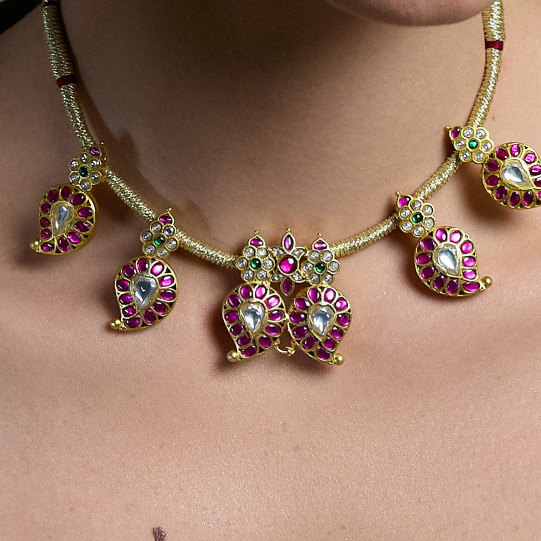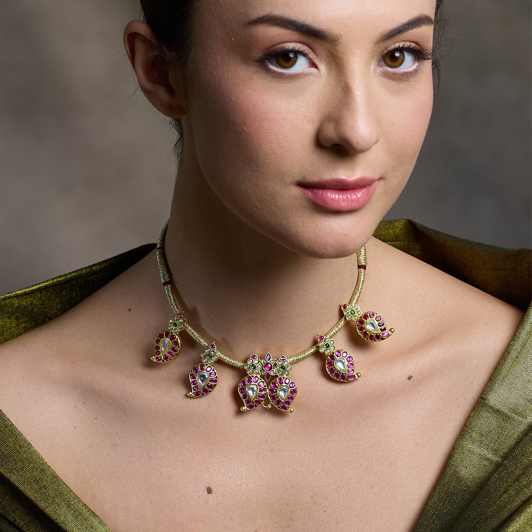 We use 22K Micron Gold Plating on brass, paired with high quality pearls, precious carved beads, semi precious stones, intricately hand painted with enamel, exquisite high quality pearls and high quality kundan that are celebrated for their durability and refinement - making every Joules by Radhika creation a piece that radiates brilliance and sophistication.