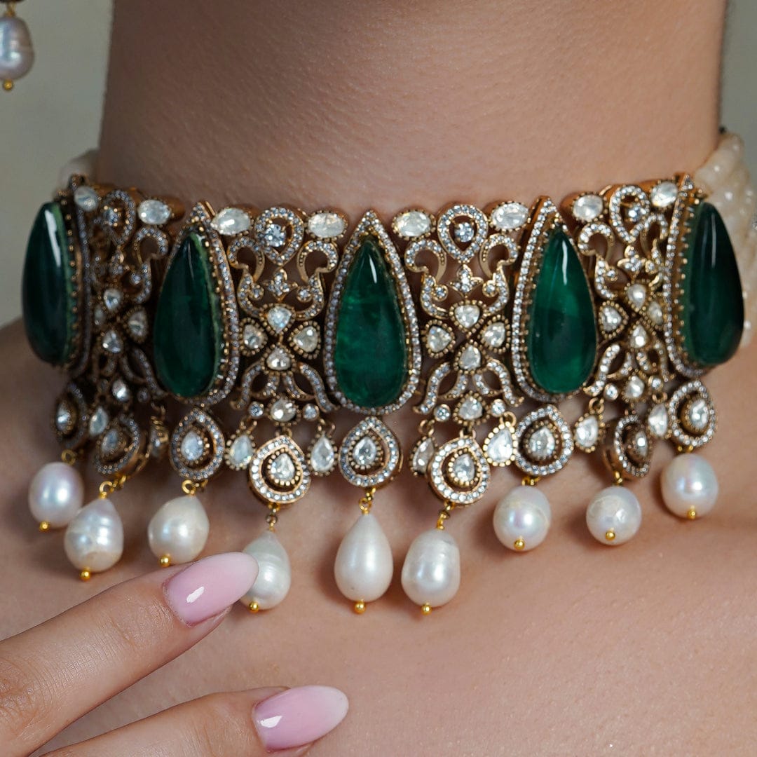 We use 22K Micron Gold Plating on brass, paired with high quality pearls, precious carved beads, semi precious stones, intricately hand painted with enamel, exquisite high quality pearls and high quality kundan that are celebrated for their durability and refinement - making every Joules by Radhika creation a piece that radiates brilliance and sophistication.