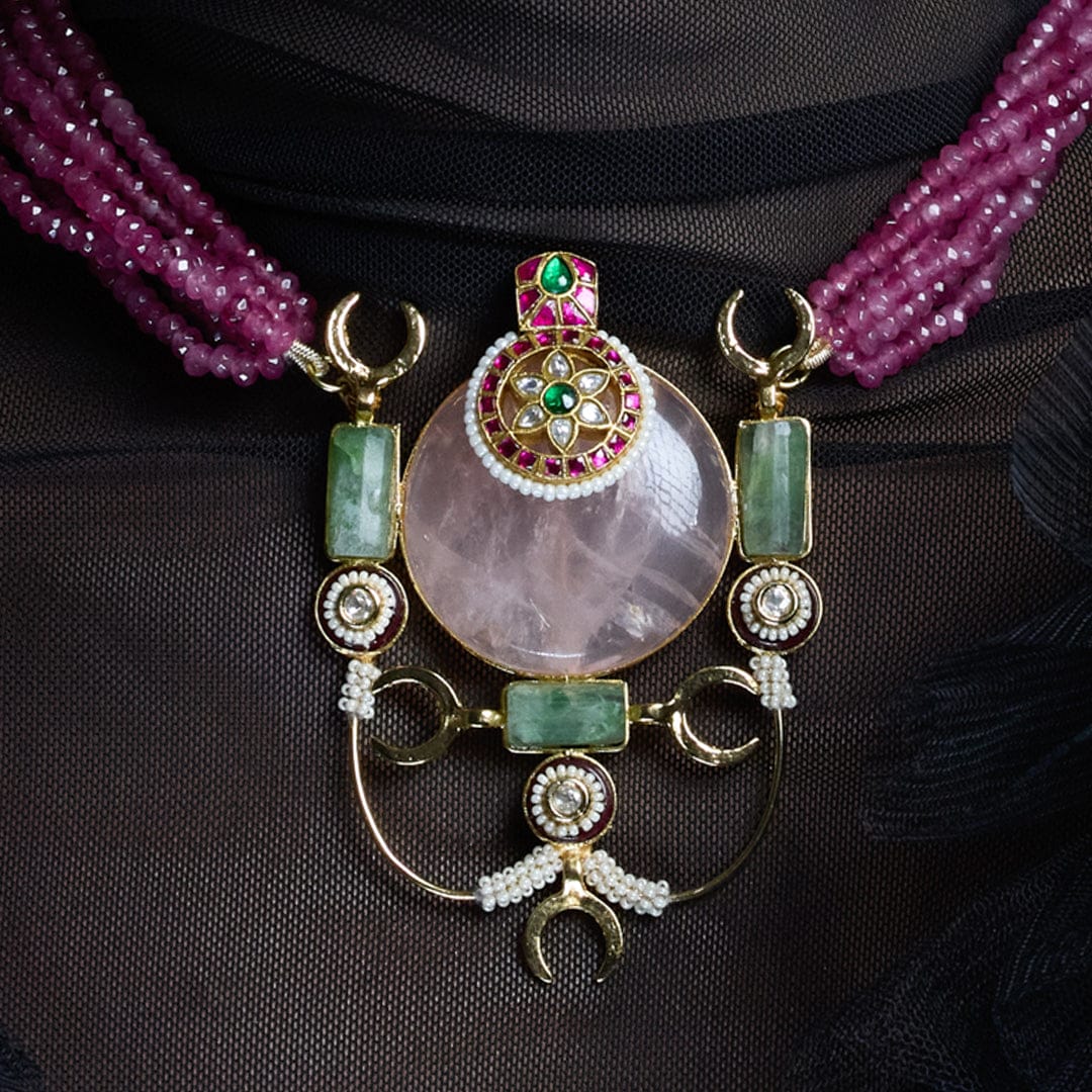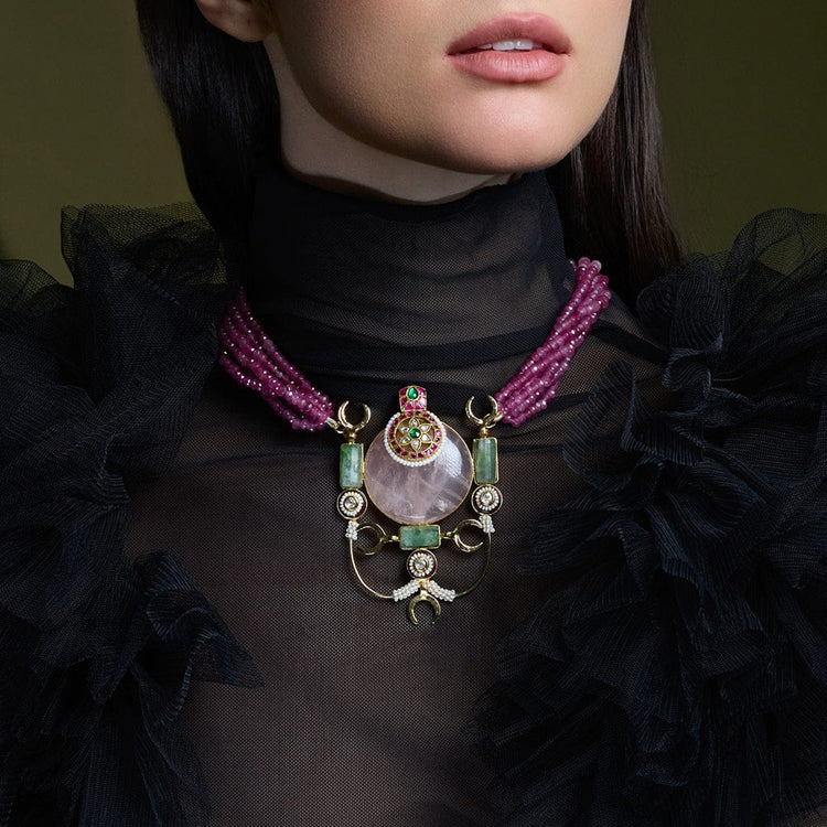 We use 22K Micron Gold Plating on brass, paired with high quality pearls, precious carved beads, semi precious stones, intricately hand painted with enamel, exquisite high quality pearls and high quality kundan that are celebrated for their durability and refinement - making every Joules by Radhika creation a piece that radiates brilliance and sophistication.