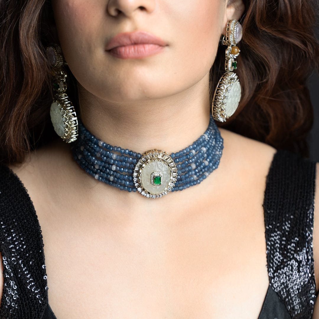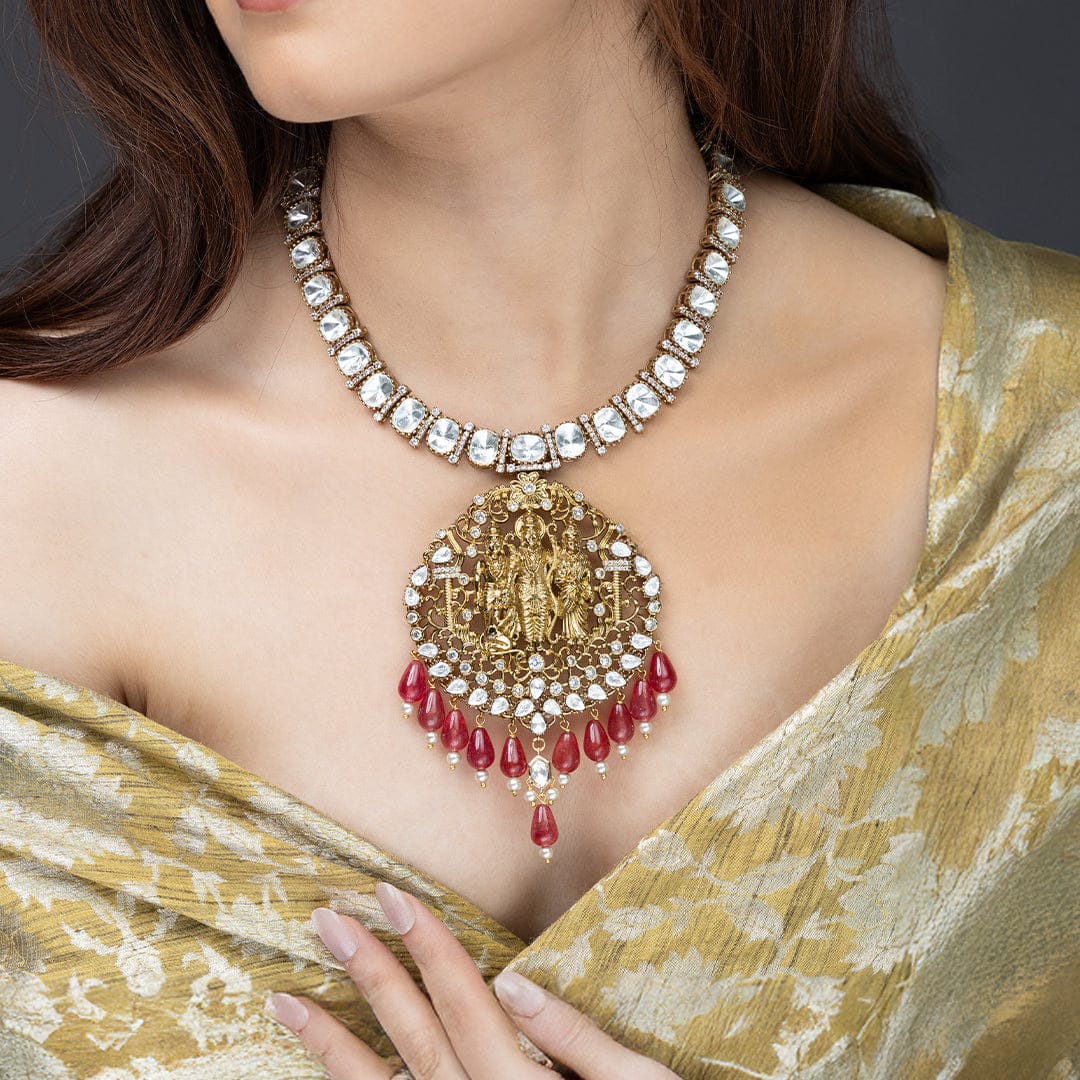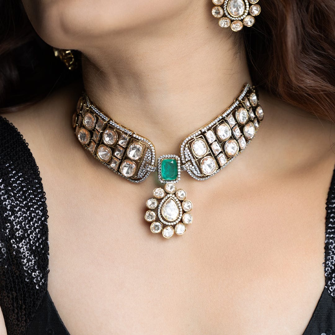 Add Emerald Cascade Polki & stone Necklace Set to the cart