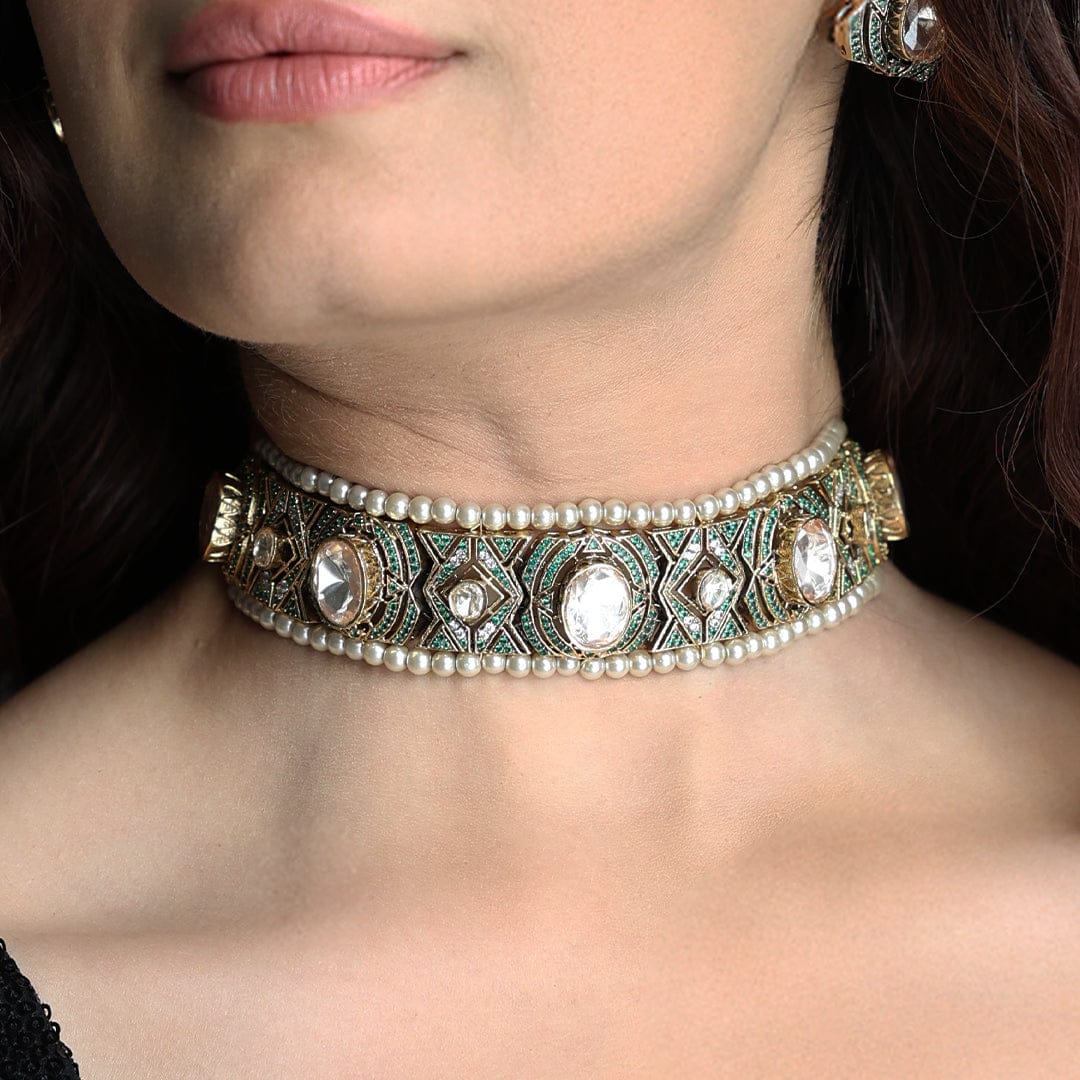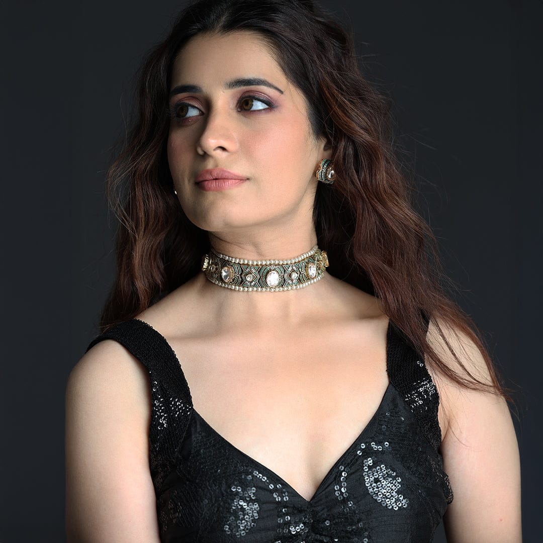 We use 22K Micron Gold Plating on brass, paired with high quality pearls, precious carved beads, semi precious stones, intricately hand painted with enamel, exquisite high quality pearls and high quality kundan that are celebrated for their durability and refinement - making every Joules by Radhika creation a piece that radiates brilliance and sophistication.