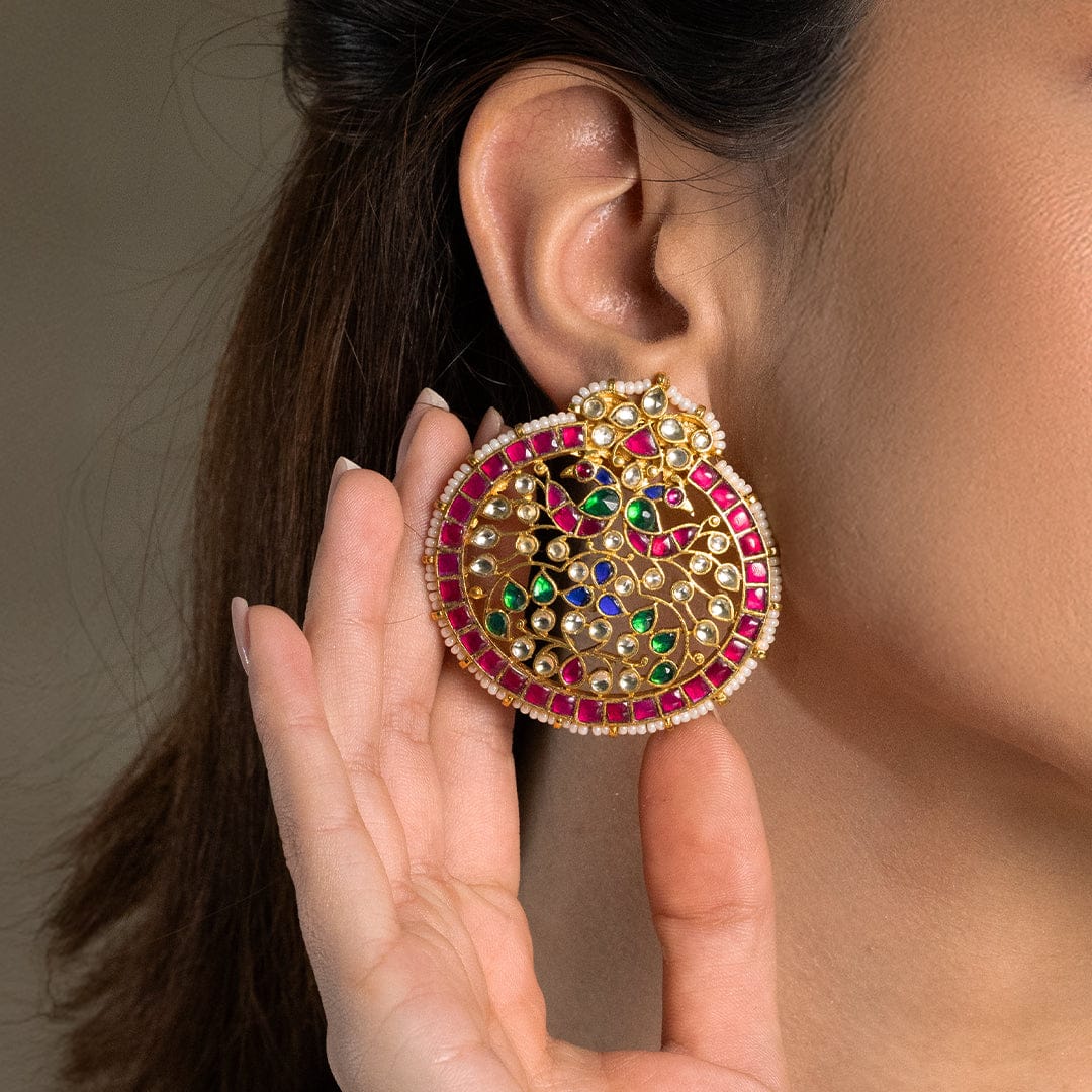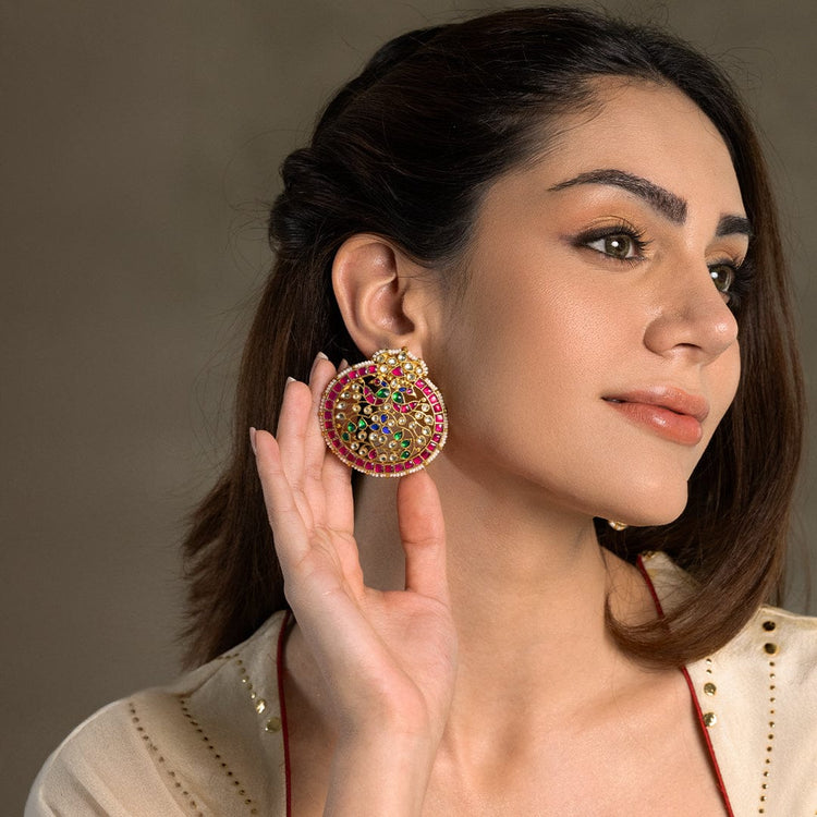 Description : An artful couture earrings captures graceful proportions and refined polish. styled with sarees, lehengas, and contemporary drapes.