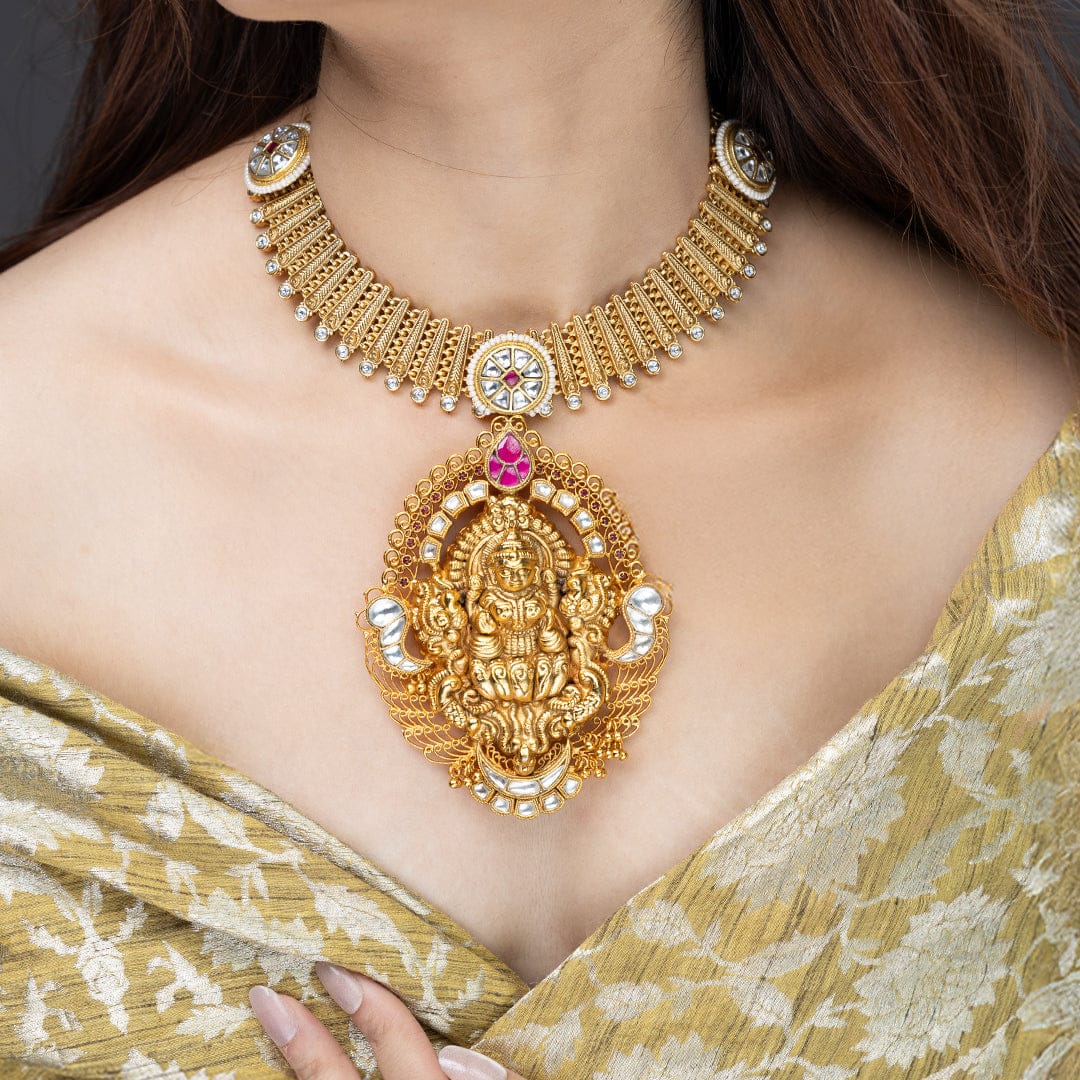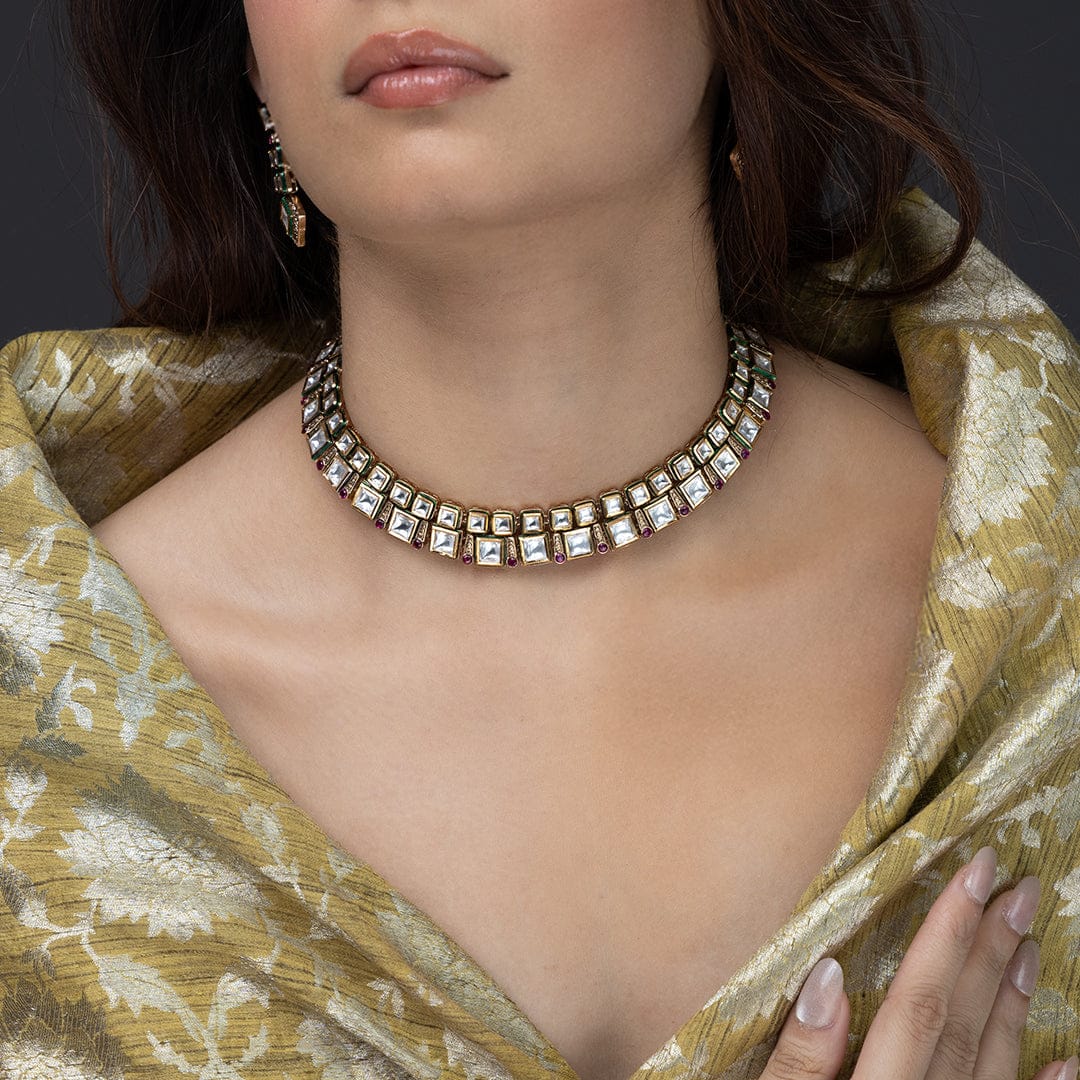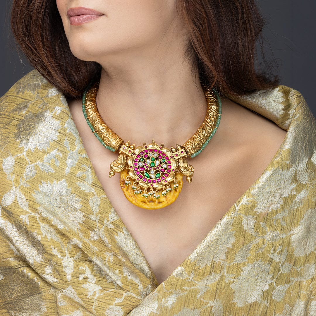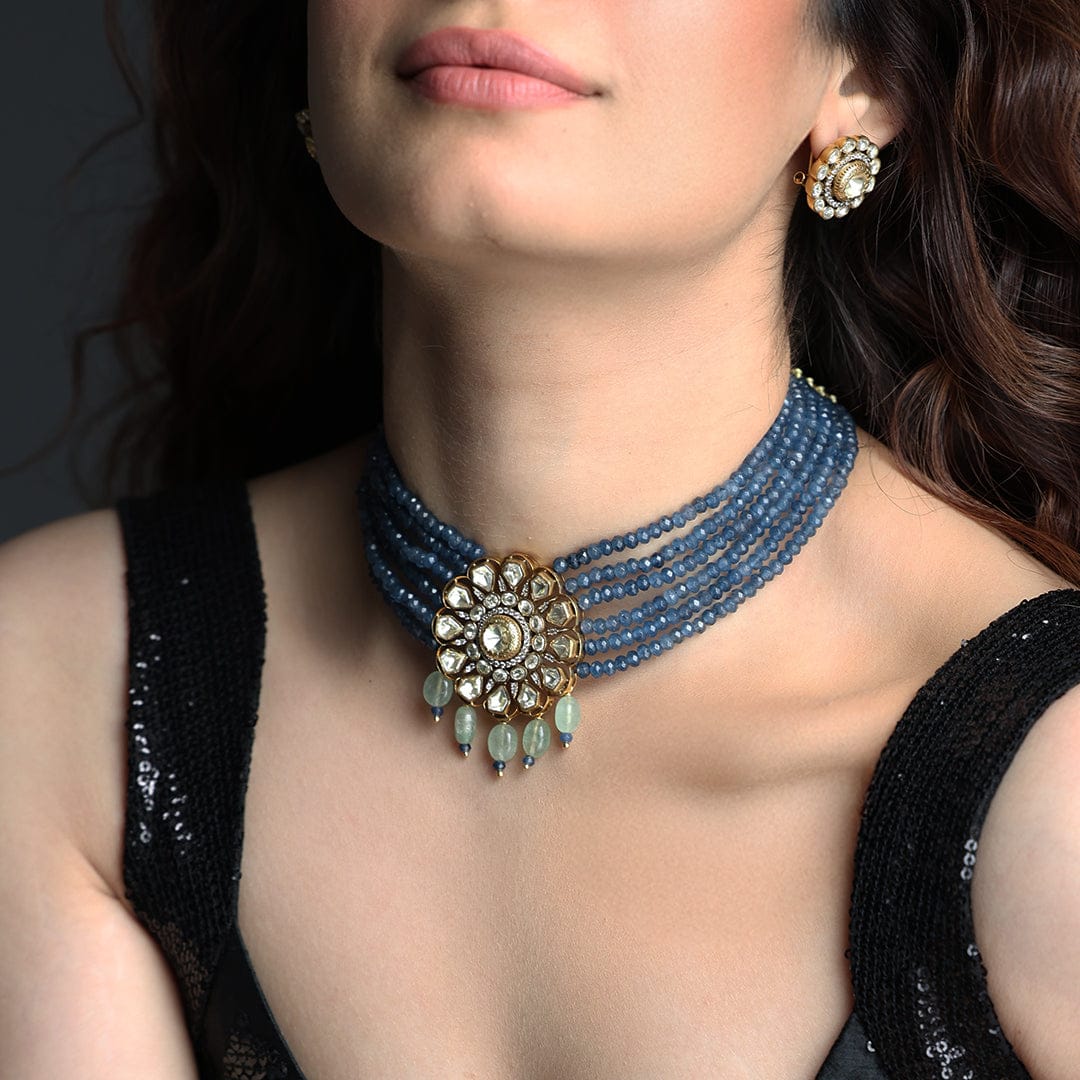 Add Floral green stone & Pearl Drop Choker Necklace Set to the cart