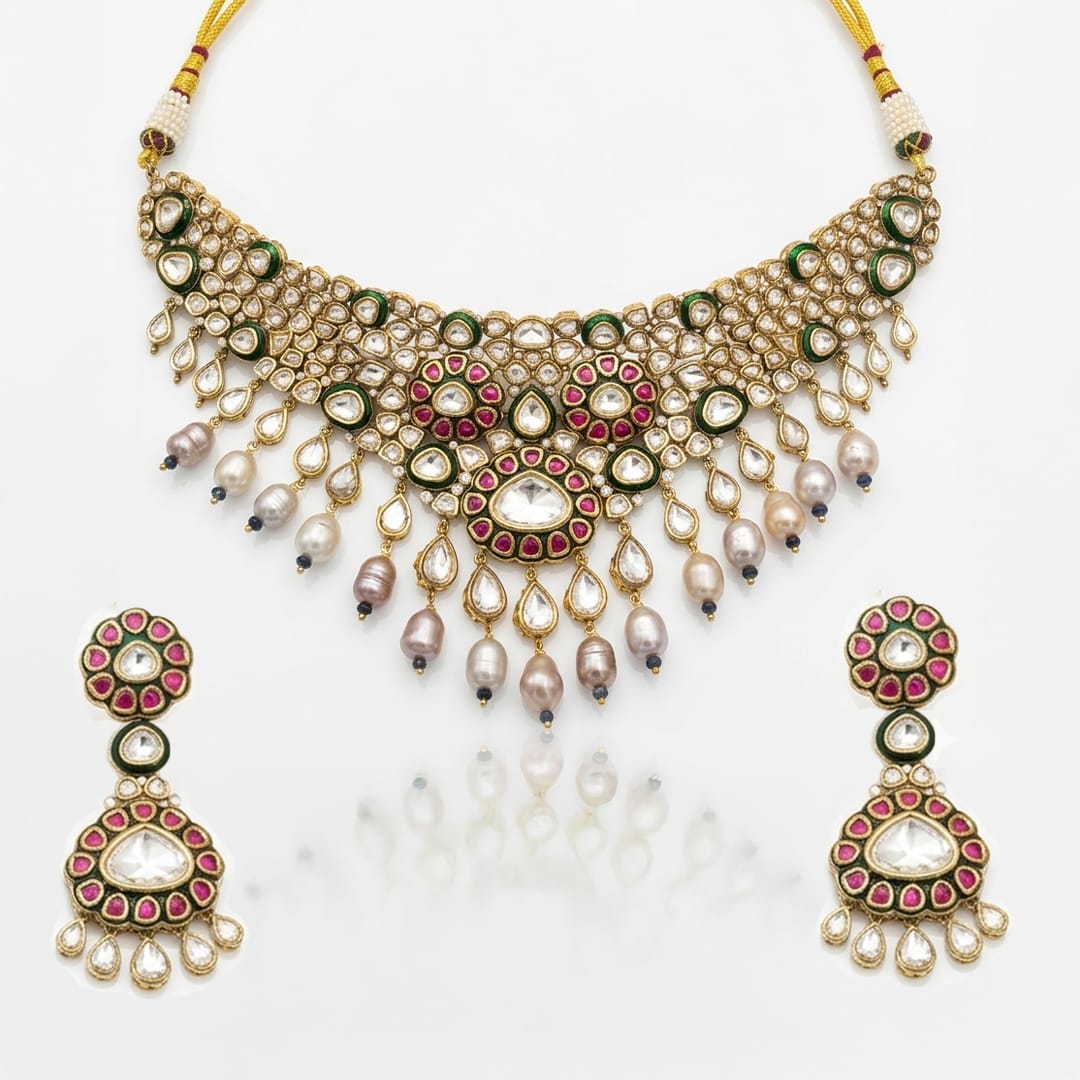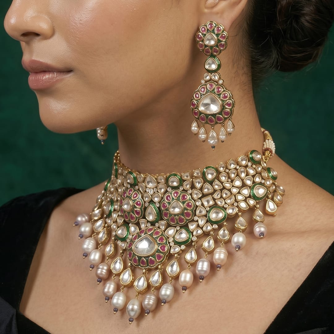 Description:A premium handcrafted jewellery piece with luminous detailing and graceful craftsmanship, designed to elevate both Indian and fusion ensembles.
