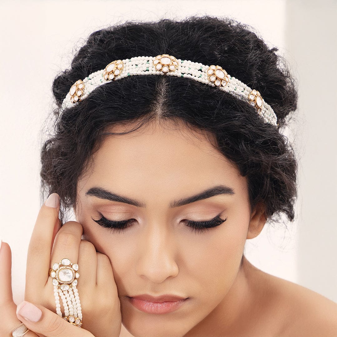 Nothing is so luxurious as the classic gold maang tikka. Made in radiant 22kt gold plating, these designs feature delicate filigree work, pearl hangings and traditional motifs. Our gold range is loved by brides and festive goers, and it is perfect to wear for bridal ceremonies, karwa chauth and Diwali celebrations.