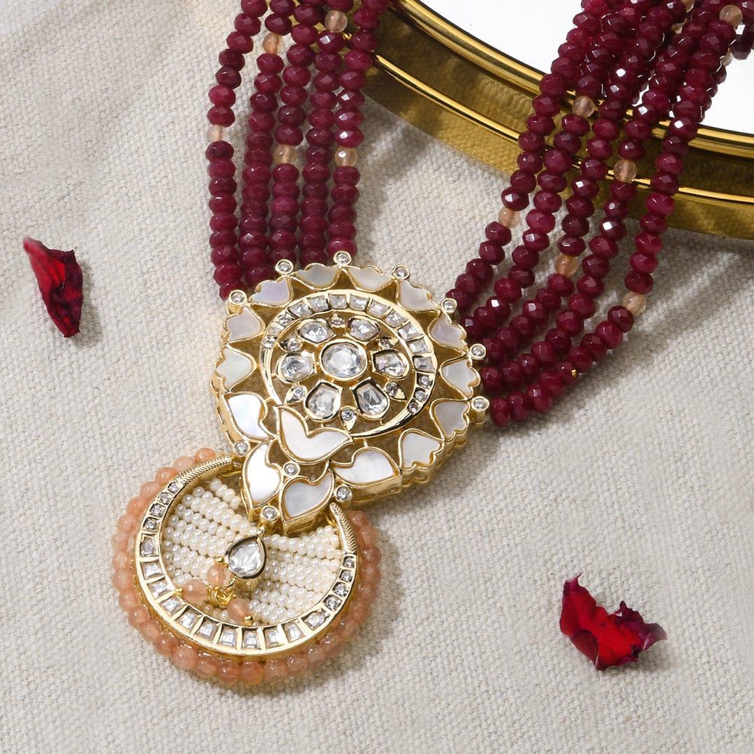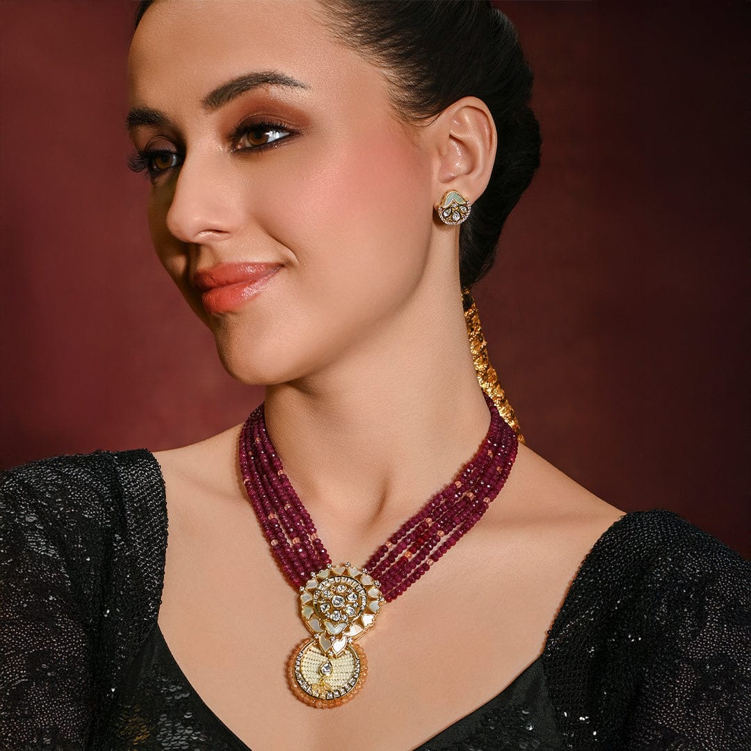 We use 22K Micron Gold Plating on brass, paired with high quality pearls, precious carved beads, semi precious stones, intricately hand painted with enamel, exquisite high quality pearls and high quality kundan that are celebrated for their durability and refinement - making every Joules by Radhika creation a piece that radiates brilliance and sophistication.