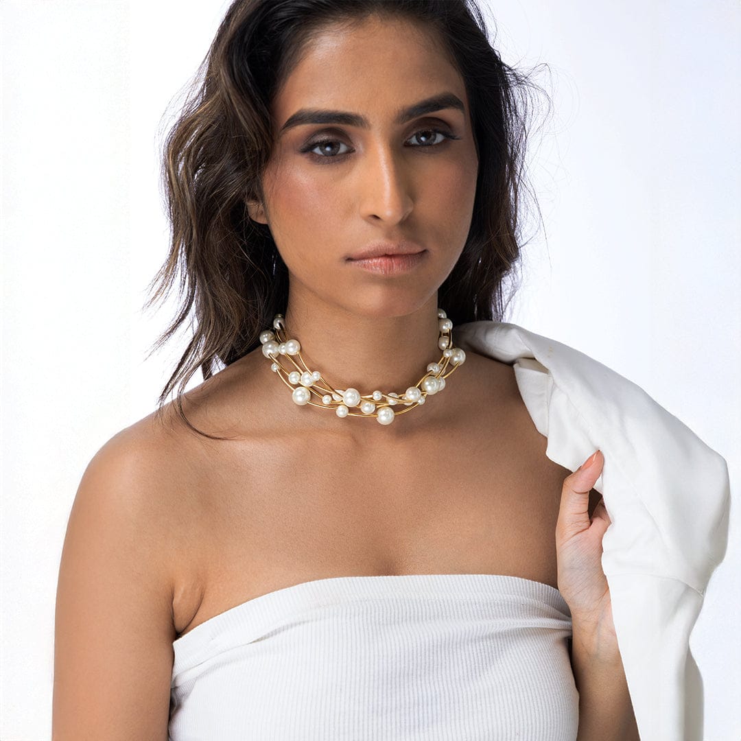 Description: Elegant layered pearl necklace with clustered beads, crafted in contemporary Indian jewellery style. Lightweight, versatile, and perfect for adding a refined, timeless touch to any look.
