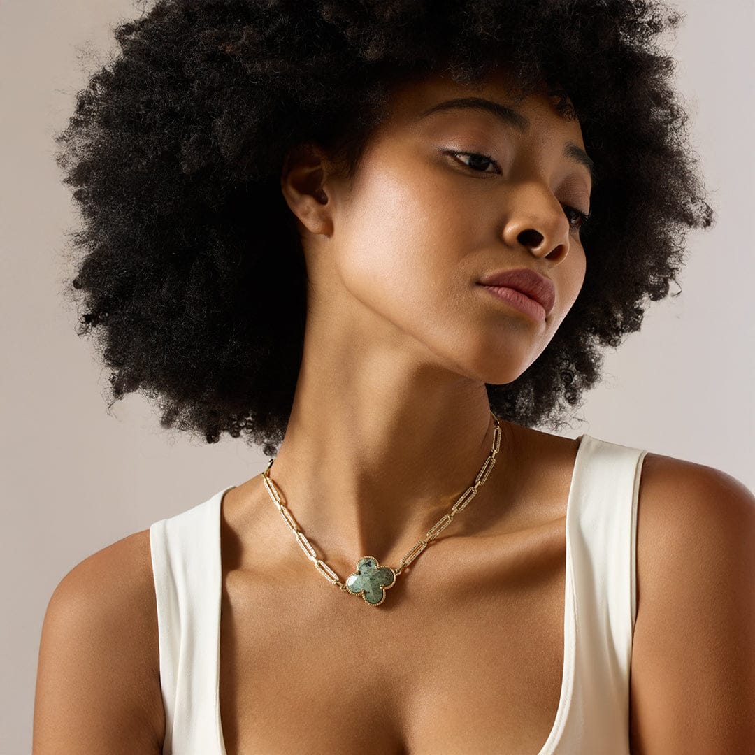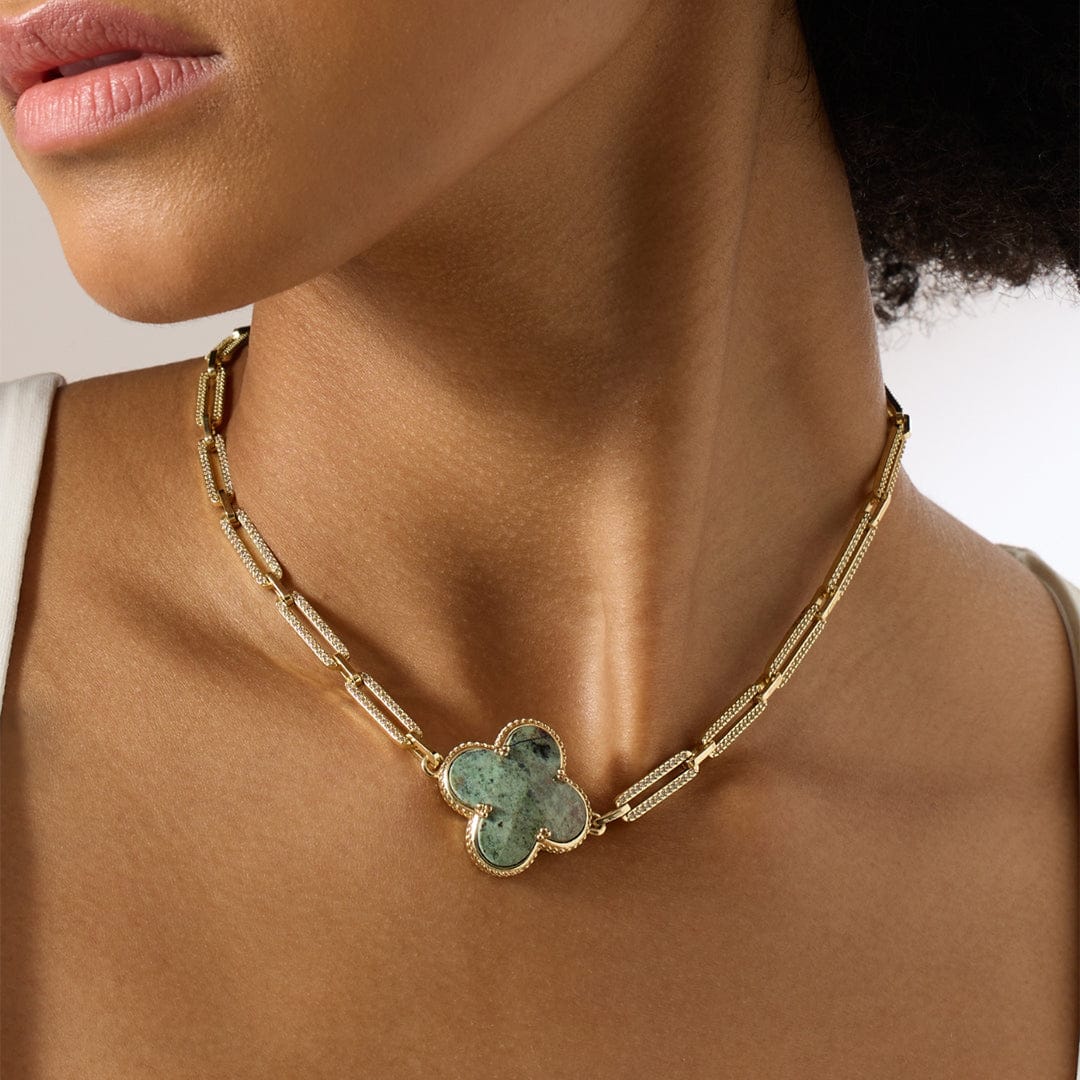 Description: The Norelia Necklace is a tribute to grounding beauty, inspired by the steady flow of forest rivers. Smooth green agate stones are set along a soft gold-toned chain, their organic tones echoing natures quiet richness. Finished with a lobster clasp, its a piece that feels calm, yet compelling. The texture and pattern of each agate stone brings its own sense of rhythm no two the same, each adding to the story of the whole.