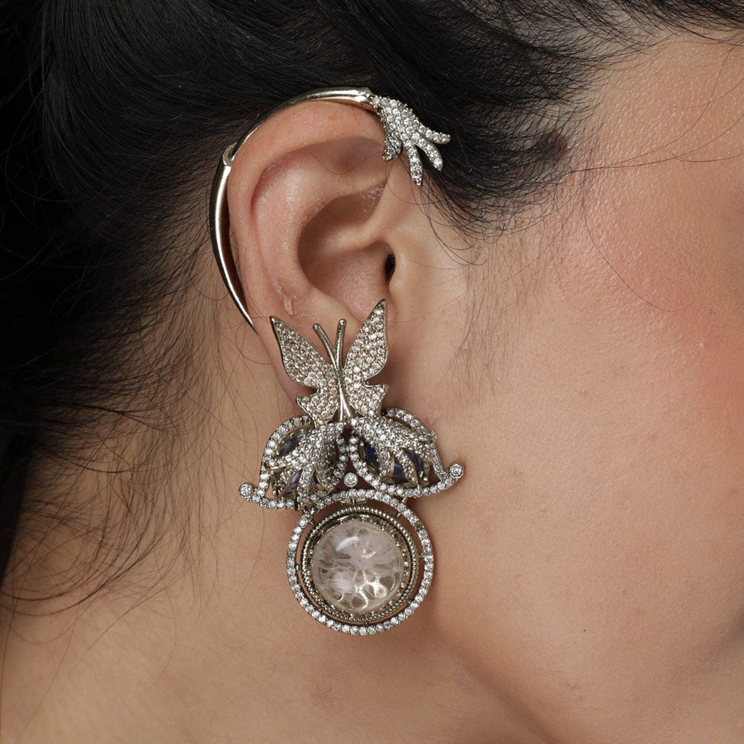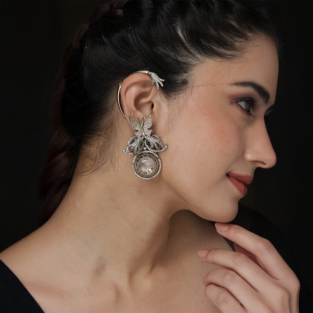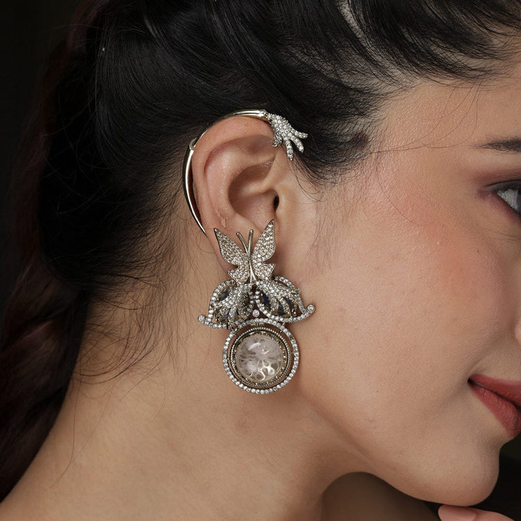 Description: Grace meets grandeur with these Enchanted Bloom Cuff Earrings. It can be worn in 2 ways, cuff with & without the drops for different occassions. Adorned with floral motifs and crystal detailing, they exude luxury and charm, adding a dazzling touch to any traditional or modern ensemble.