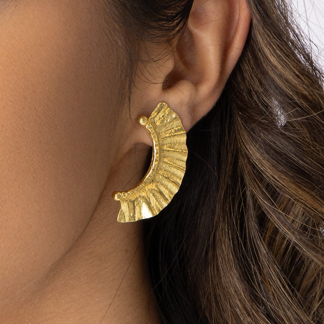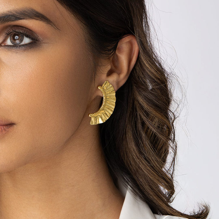 Description: This triple-textured ear cuff features three circular, patterned elements that create a bold yet elegant look. Lightweight and stylish, it enhances both casual and festive outfits effortlessly.