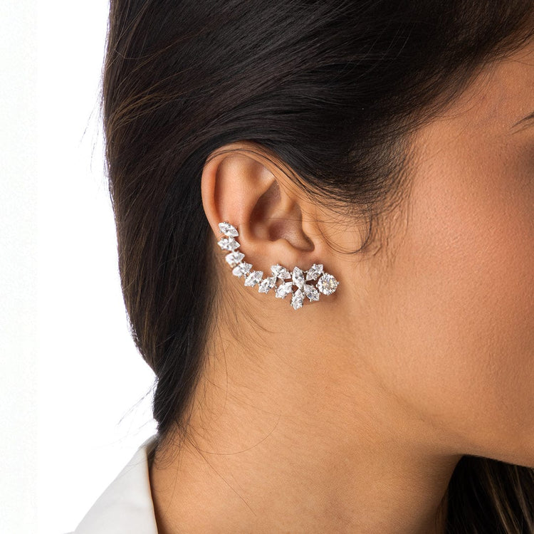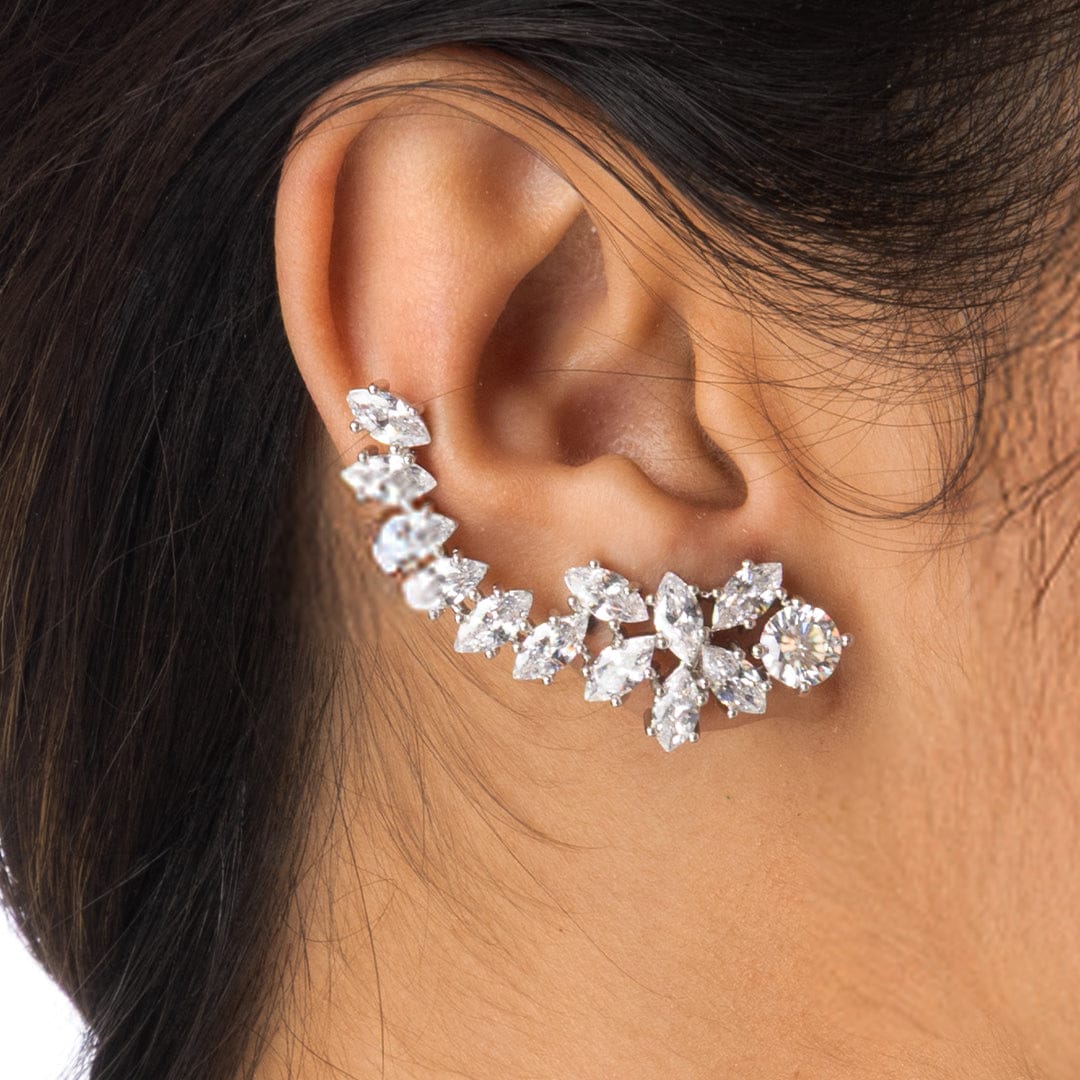 Description: Ahaanya presents a stunning Indian jewellery floral ear climber with refined silver plating, perfect for online Indian jewellery lovers who prefer elegant, sparkling festive styling.
