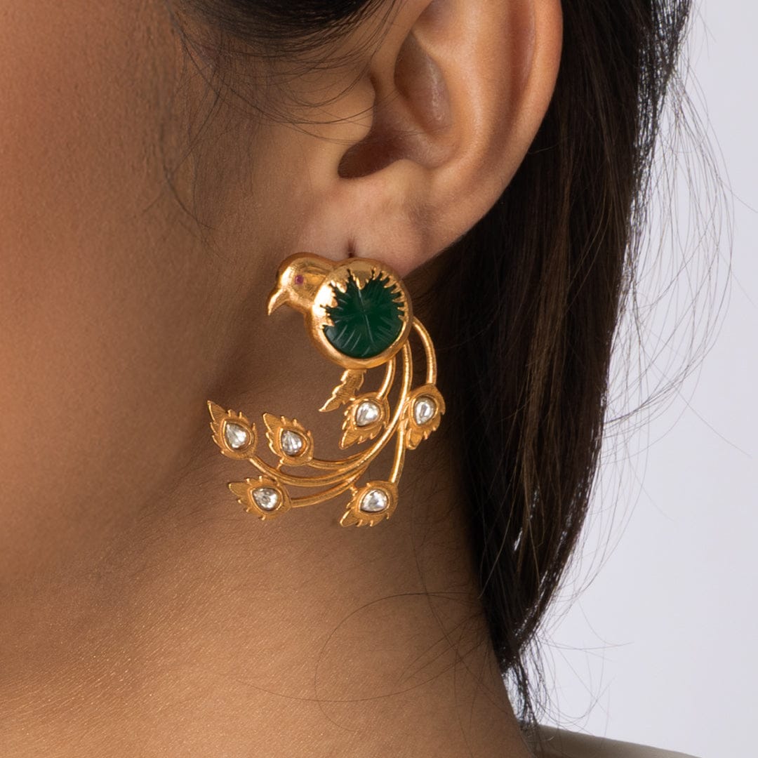 Description: These exquisite oval studs feature a dazzling arrangement of uncut, brilliant stones in a shimmering metallic base. They are a classic and timeless choice of Indian jewellery available through online Indian jewellery shops.