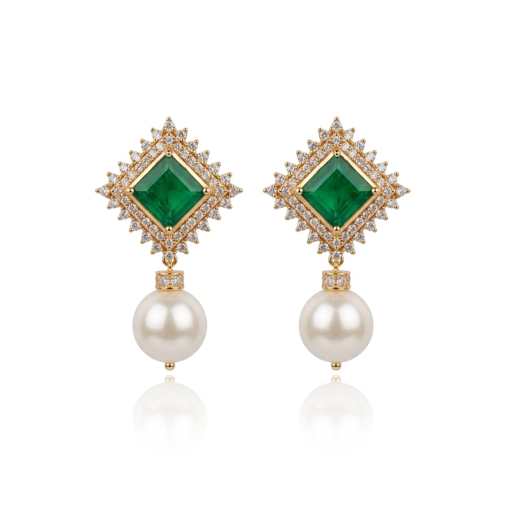 Our polki chandbali features emerald, pearl hangings and fusion with tradition and modern style. It gives you a timeless and dramatic look.Β