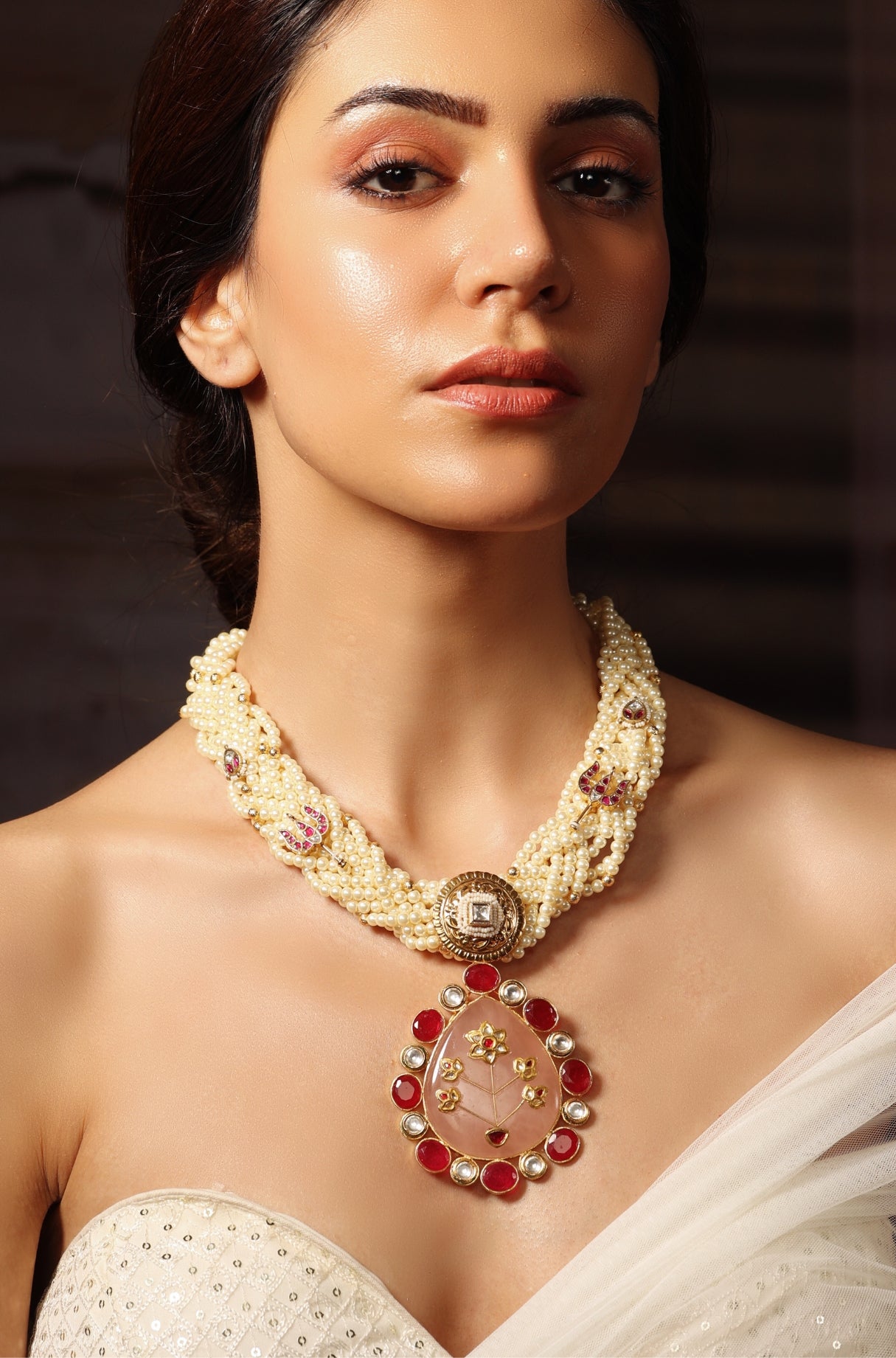 We use 22K Micron Gold Plating on brass, paired with high quality pearls, precious carved beads, semi precious stones, intricately hand painted with enamel, exquisite high quality pearls and high quality kundan that are celebrated for their durability and refinement - making every Joules by Radhika creation a piece that radiates brilliance and sophistication.