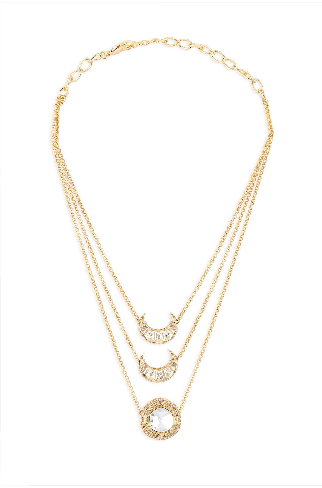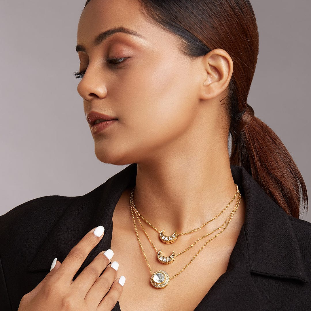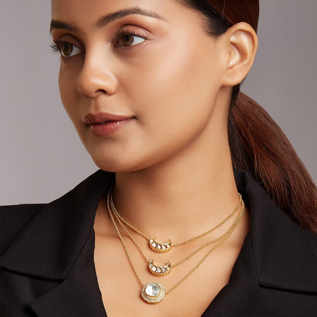 Description: Embrace entirely your outfit of the day by adding this elegantly modern polki necklace that is made with micron gold plated chains, Austrian zirconia diamonds and polkis. Ideal for daily fashion on your indo western outfits. Every artistic piece from Joules by Radhika is made with best quality raw materials only, giving it a regal look & feel.