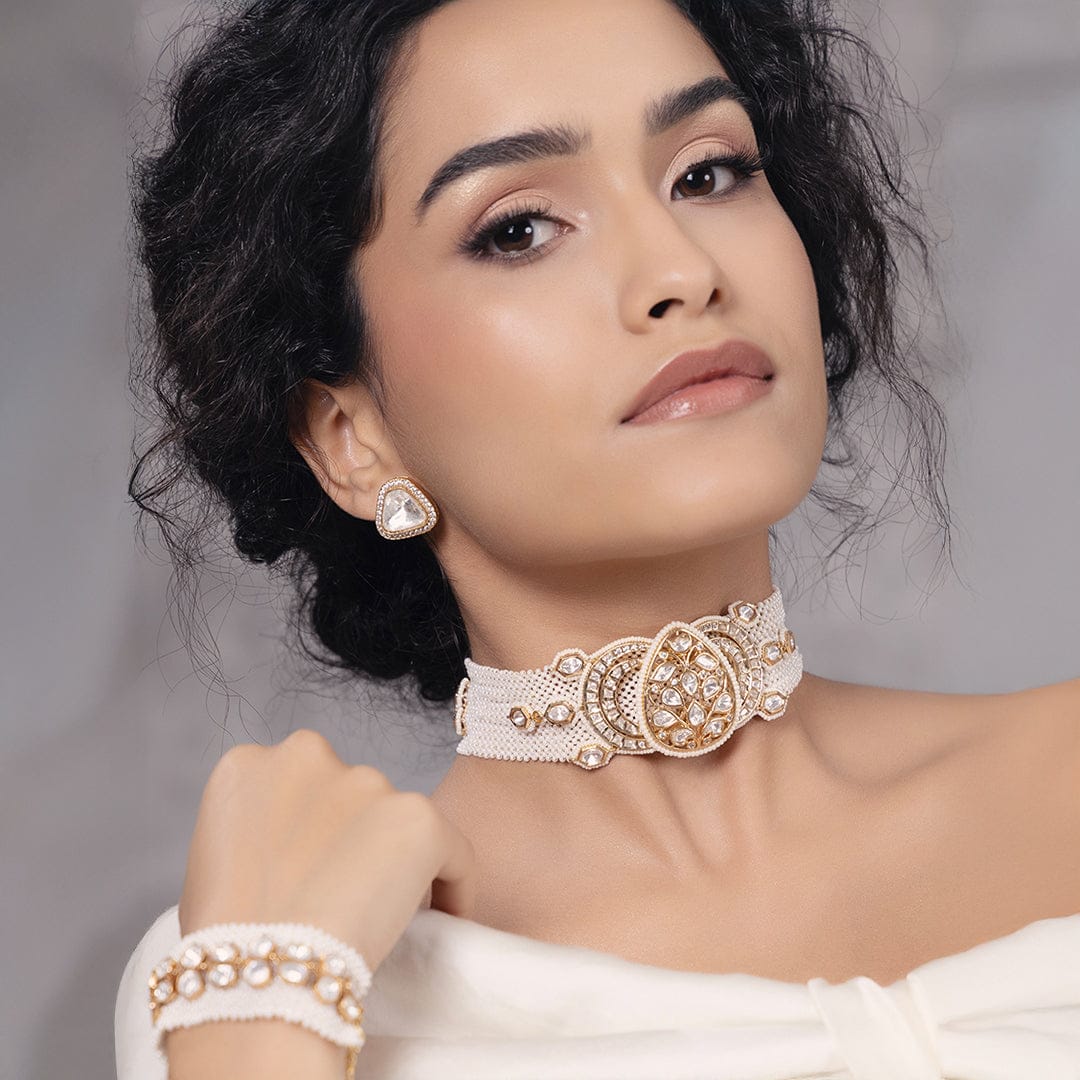 We use 22K Micron Gold Plating on brass, paired with high quality pearls, precious carved beads, semi precious stones, intricately hand painted with enamel, exquisite high quality pearls and high quality kundan that are celebrated for their durability and refinement - making every Joules by Radhika creation a piece that radiates brilliance and sophistication.