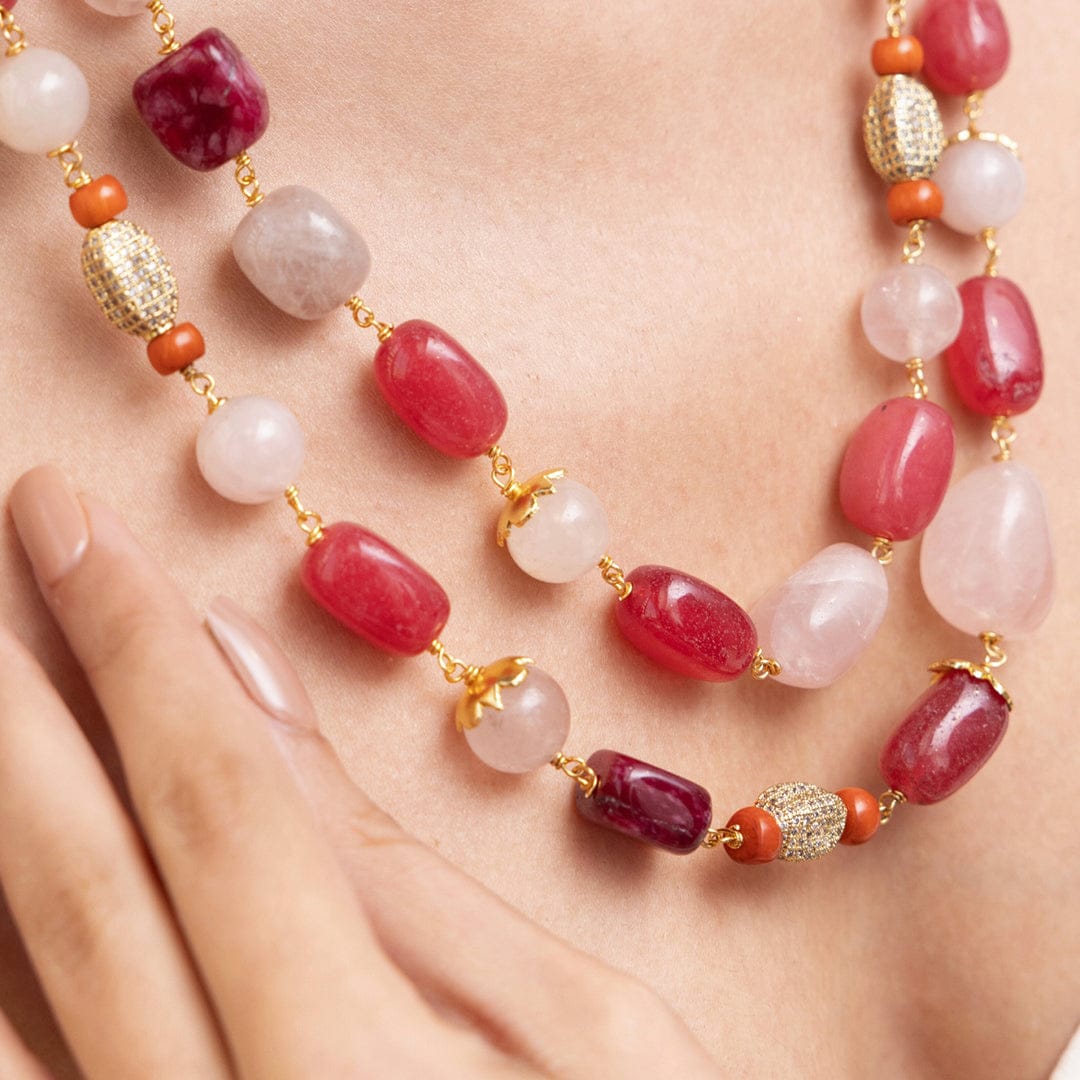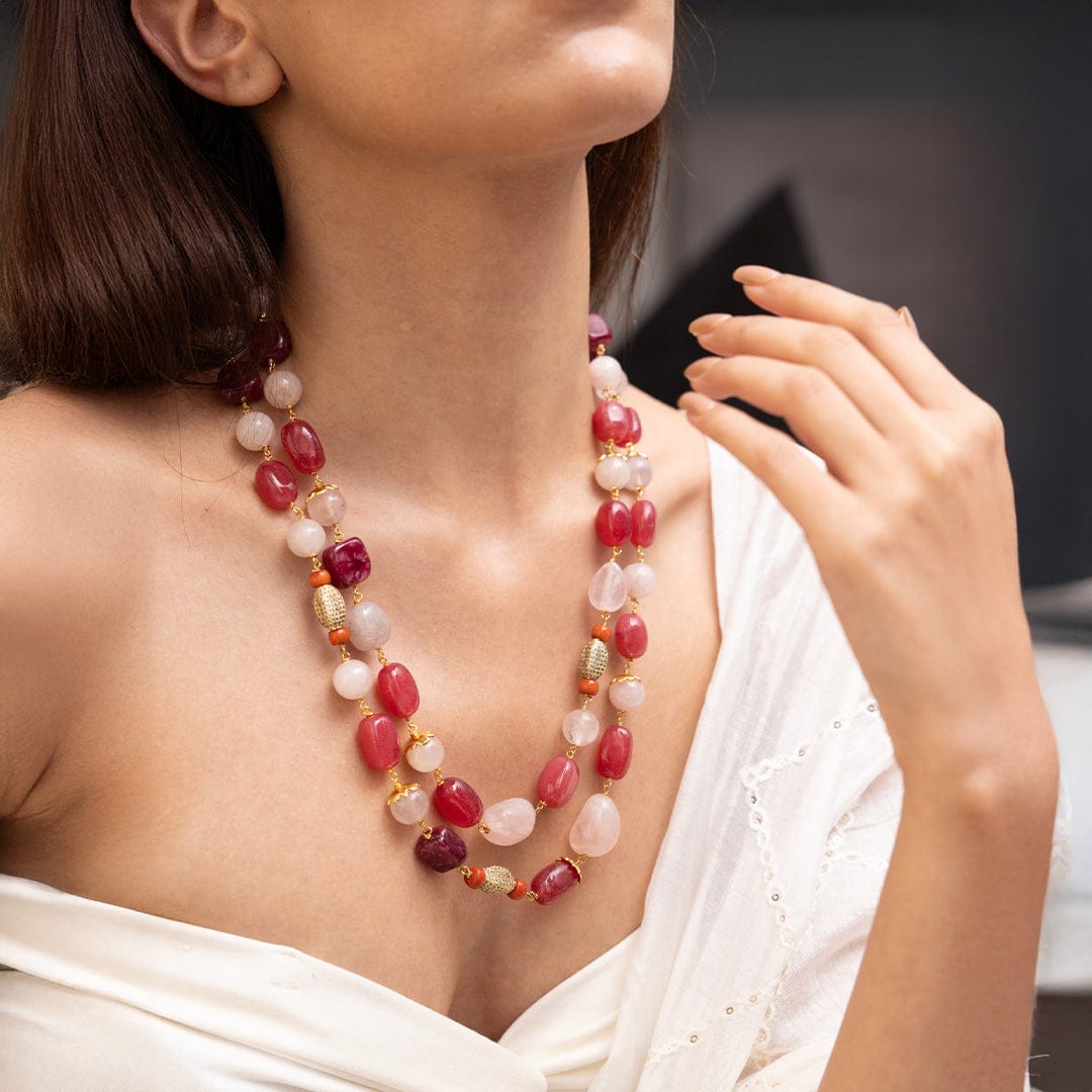 Description: Blending blush pink tones with luminous pearls, this double-strand necklace is feminine, fresh, and timeless. A soft statement for festive luncheons, pre-wedding events, or pastel-inspired celebrations.
